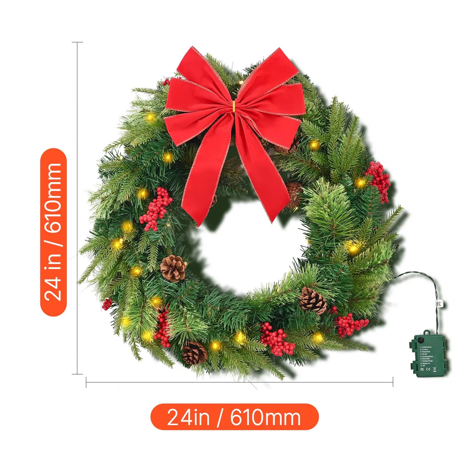 • 24" Realistic Wreath: This Christmas wreath features faux pine needles, holly leaves, real pine cones, red berries, and a bow. Perfect for front doors, fireplaces, walls, or windows. It instantly enhances holiday cheer. 🎅