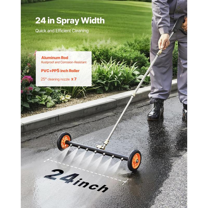 ·φ24 Inch Fast & Efficient Cleaning: With a high flow rate of 6.2 gal/min and 7 cleaning nozzles, this φ24-inch pressure washer surface cleaner ensures even coverage, leaving no spot behind. Whether it's a large job or everyday cleaning, the φ24-inch wide cleaning width makes the task easy. Enjoy fast, efficient cleaning while saving time and effort.
