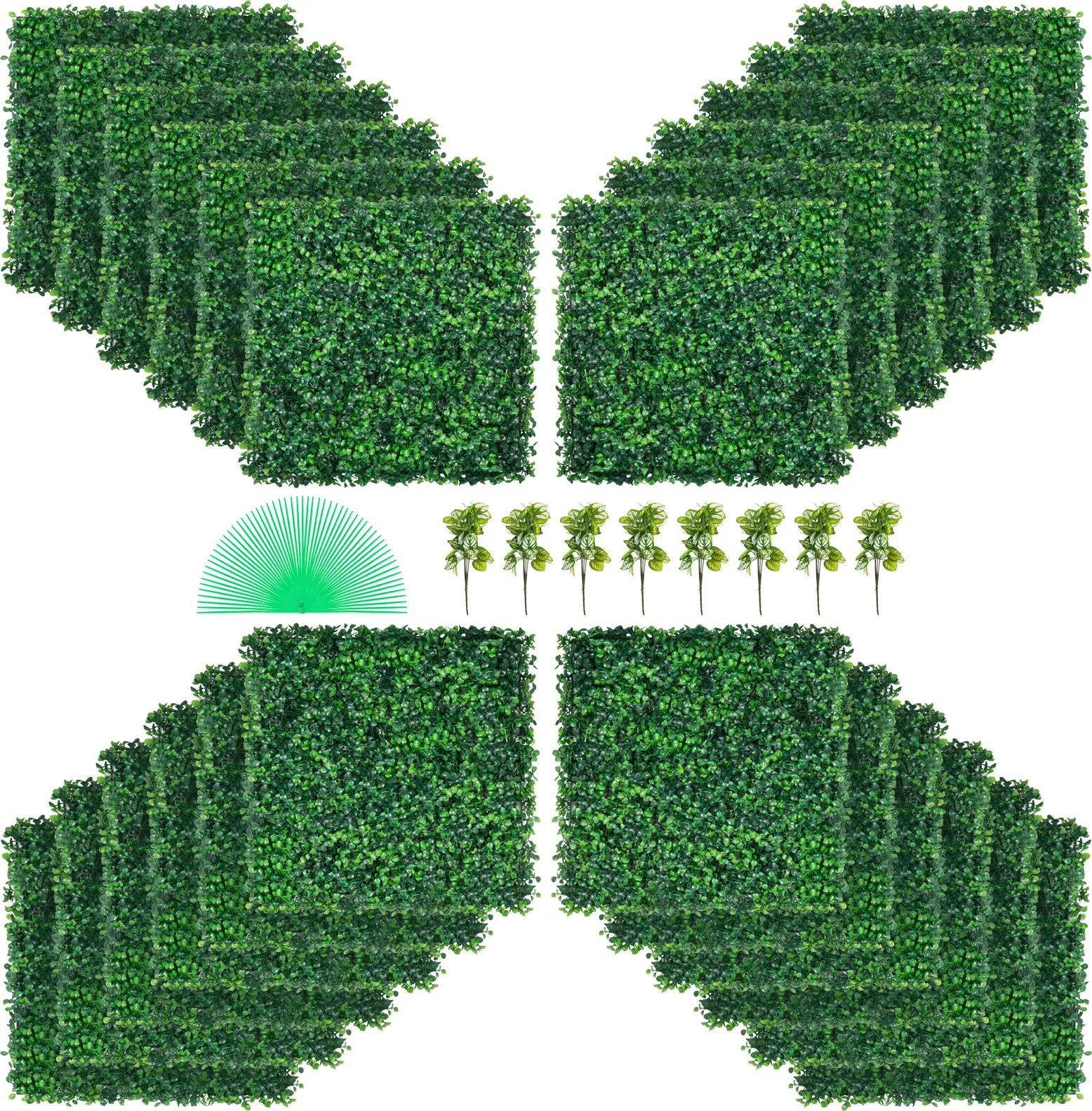 • Durable 100% PE: Size: 20'' x 20"; Quantity: 24 pcs; Covering: 66 sq.ft; Thickness: 1.6''. The green wall is made of polyethylene, sun-proof, non-fading, unbreakable, and withstands all weather conditions for years to come. Get ready to make any space stand out and show off your love for nature! Also, our plant walls are odorless, suitable for your home, and friendly to the old and children. It is SGS certificated.