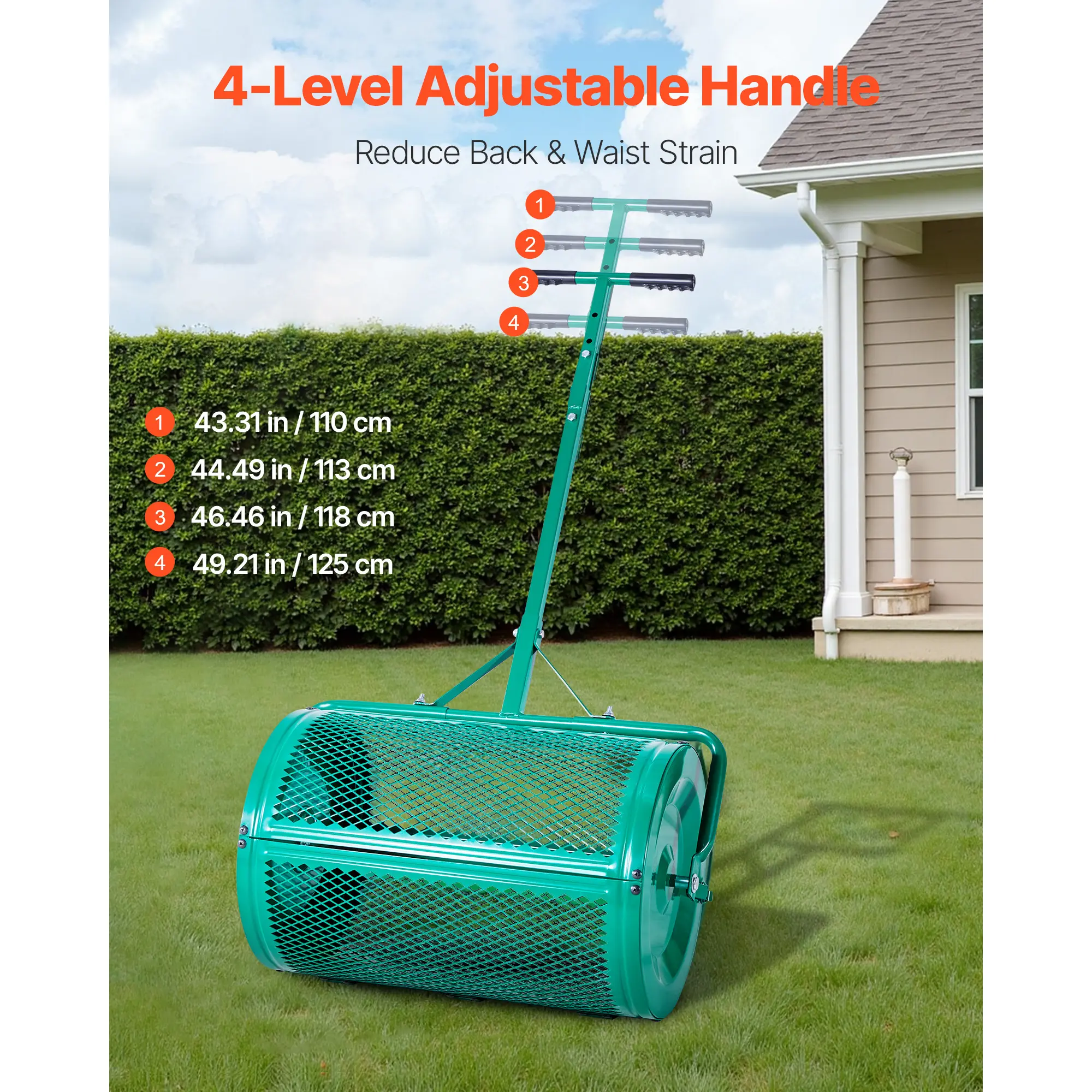 VEVOR Compost Spreader,  24 in Wide Peat Moss Spreader with Push/Tow Handle, 4 Heights Adjustable, Powder-Coated Steel Garden Peat Moss Roller, Heavy Duty Grass Seed Spreaders for Planting Seeding