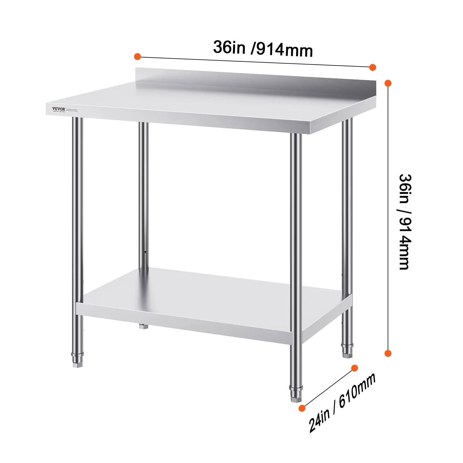 • User-Friendly Design: Featuring 3-level adjustable shelves, this work table offers the most user-friendly and practical functionality. Simply adjust the shelf height with screws to accommodate items of different sizes. The high rear backsplash prevents items from falling off and guards against water splashes.