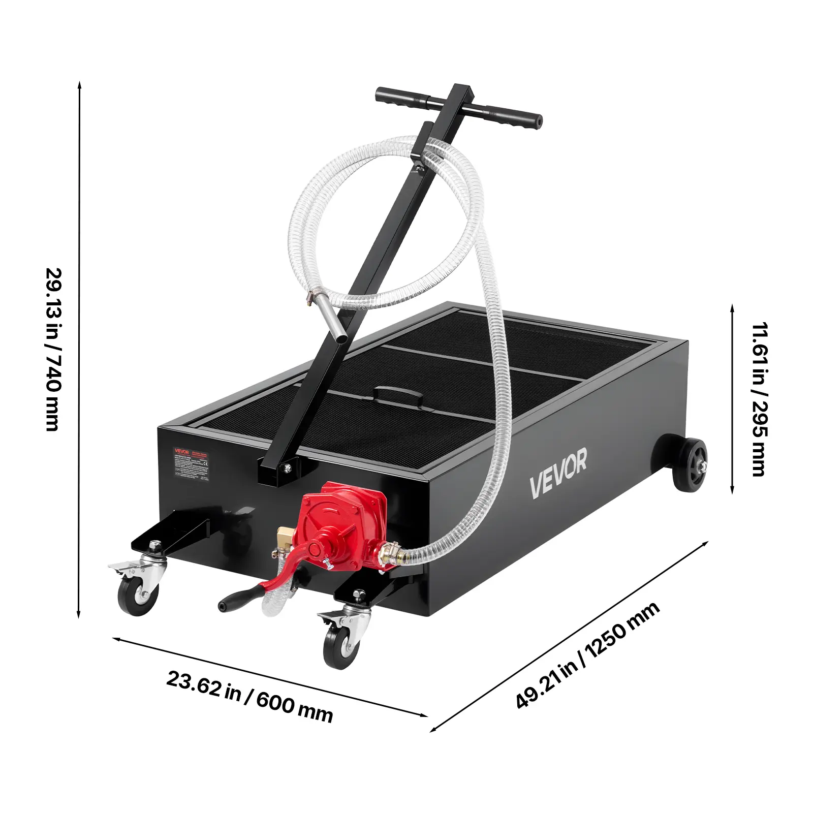 • Efficient Oil Draining: This low profile oil drain pan comes with a hand pump, no power needed! Its solid build makes it reliable in outdoor or no-electricity settings like farms or service trucks, giving you full control every time