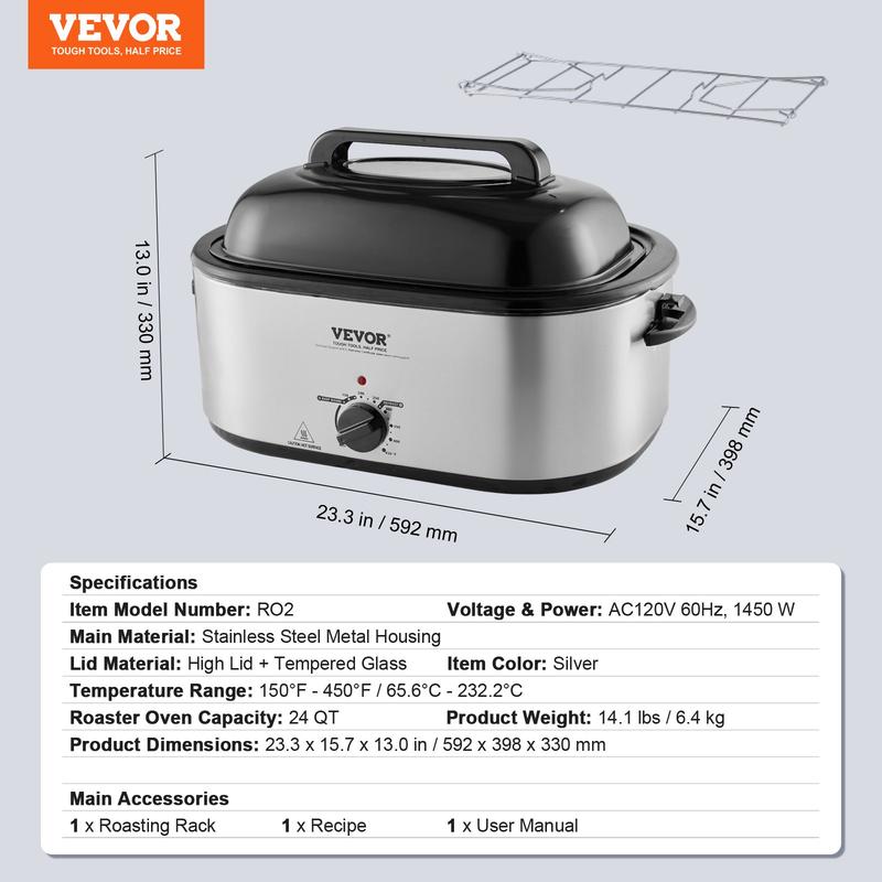 VEVOR Electric Roaster Oven is ideal for roasting turkeys up to 30 lbs. It features a 26 QT capacity, ensuring ample space for your feast. The oven includes a self-basting lid and a removable pan & rack for easy cleanup. This versatile oven is perfect for any home with a large turkey.