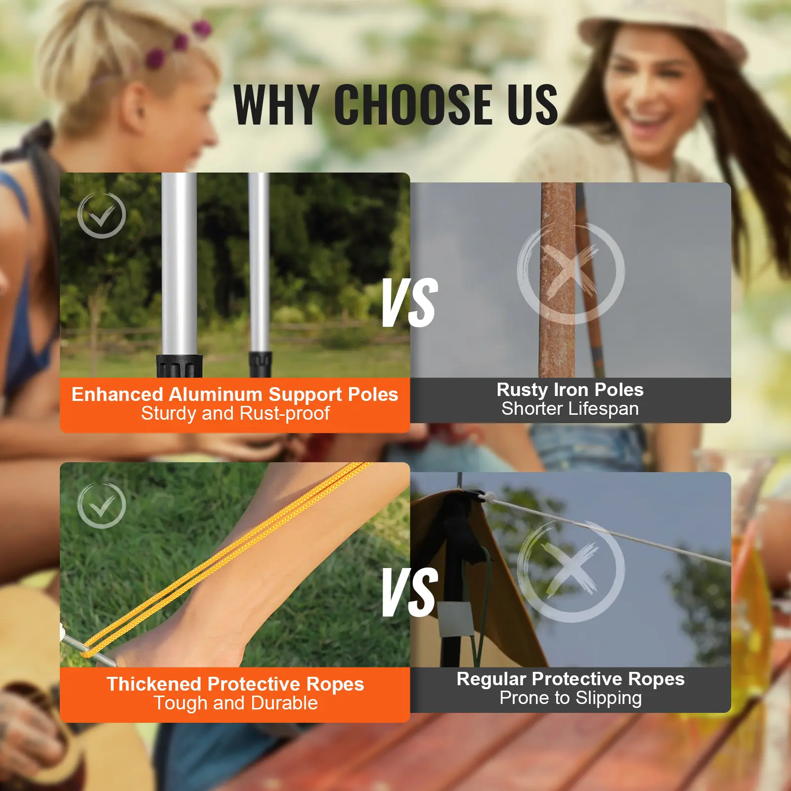 • Heavy-Duty & Durable Material: Crafted from 280G polyester fabric with a PU 3000mm coating, the car side awning is dense and durable. The aluminum alloy support poles and 270° fan-shaped bracket are sturdy and rust-proof. Thickeded wind-resistant ropes are ready to withstand all weather conditions.