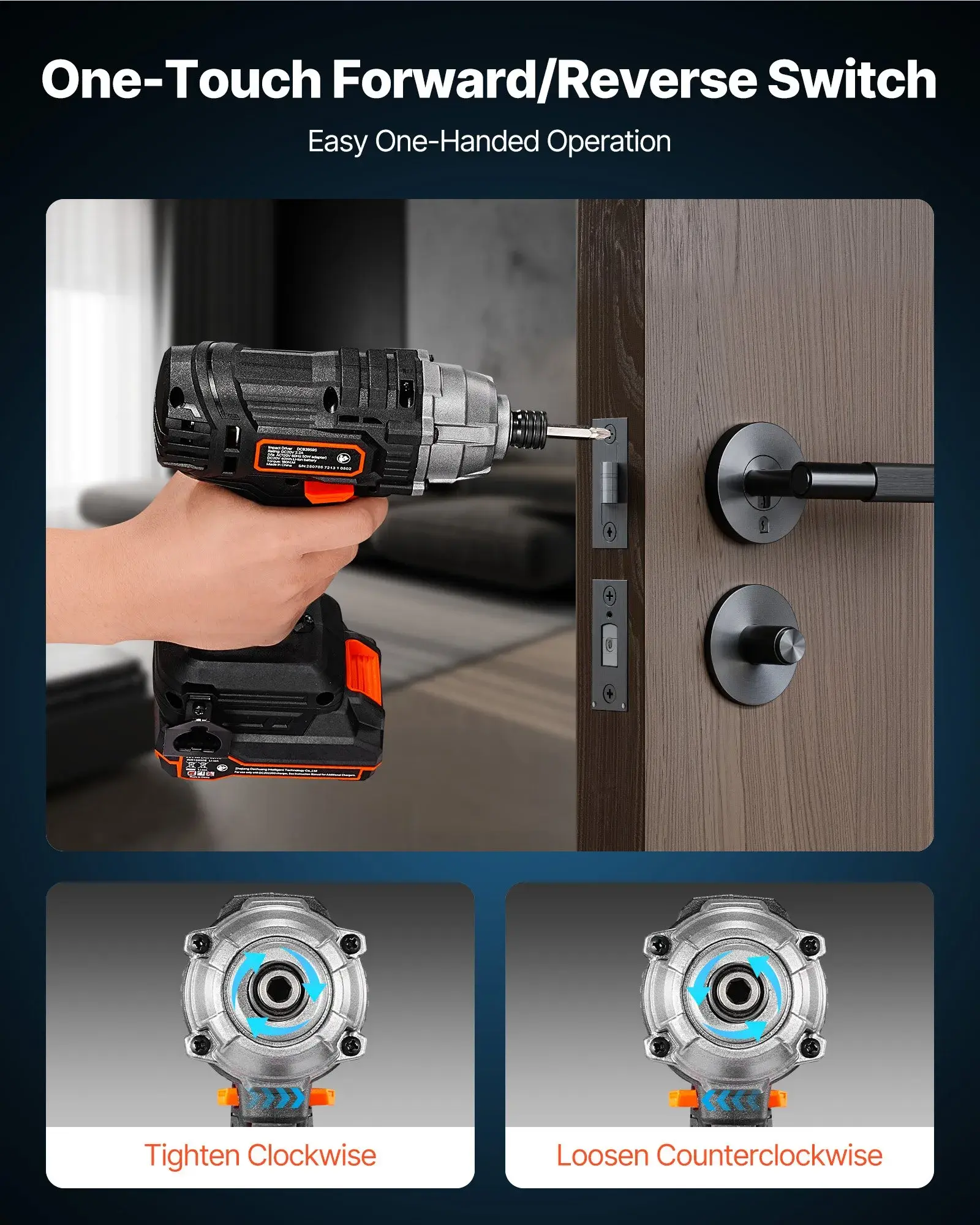 Our power impact driver offers one-touch forward and reverse operation. A simple press switches between modes effortlessly. This feature allows easy one-handed operation, perfect for tight spaces or when both hands are busy.