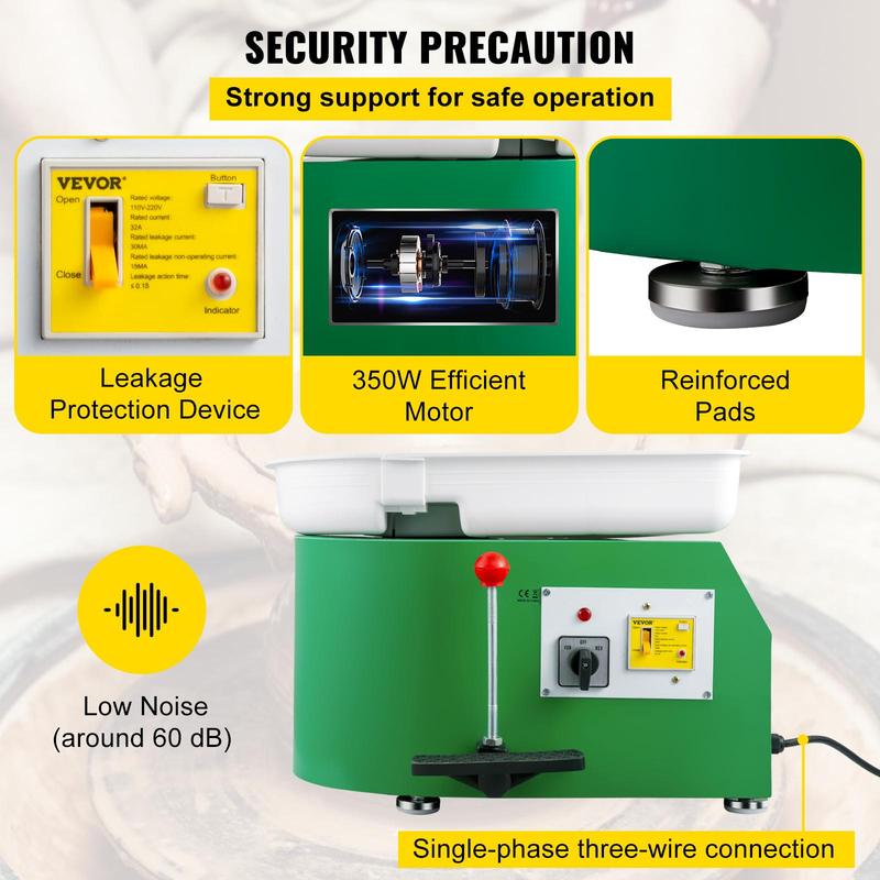 • Flexible Operation: This pottery wheel comes with a foot pedal and a speed manual handle, rotating smoothly with low noise (less than 60dB) and 0-300 r/min effect. It can be switched clockwise or counterclockwise, enriching the flexibility of the ceramic process.