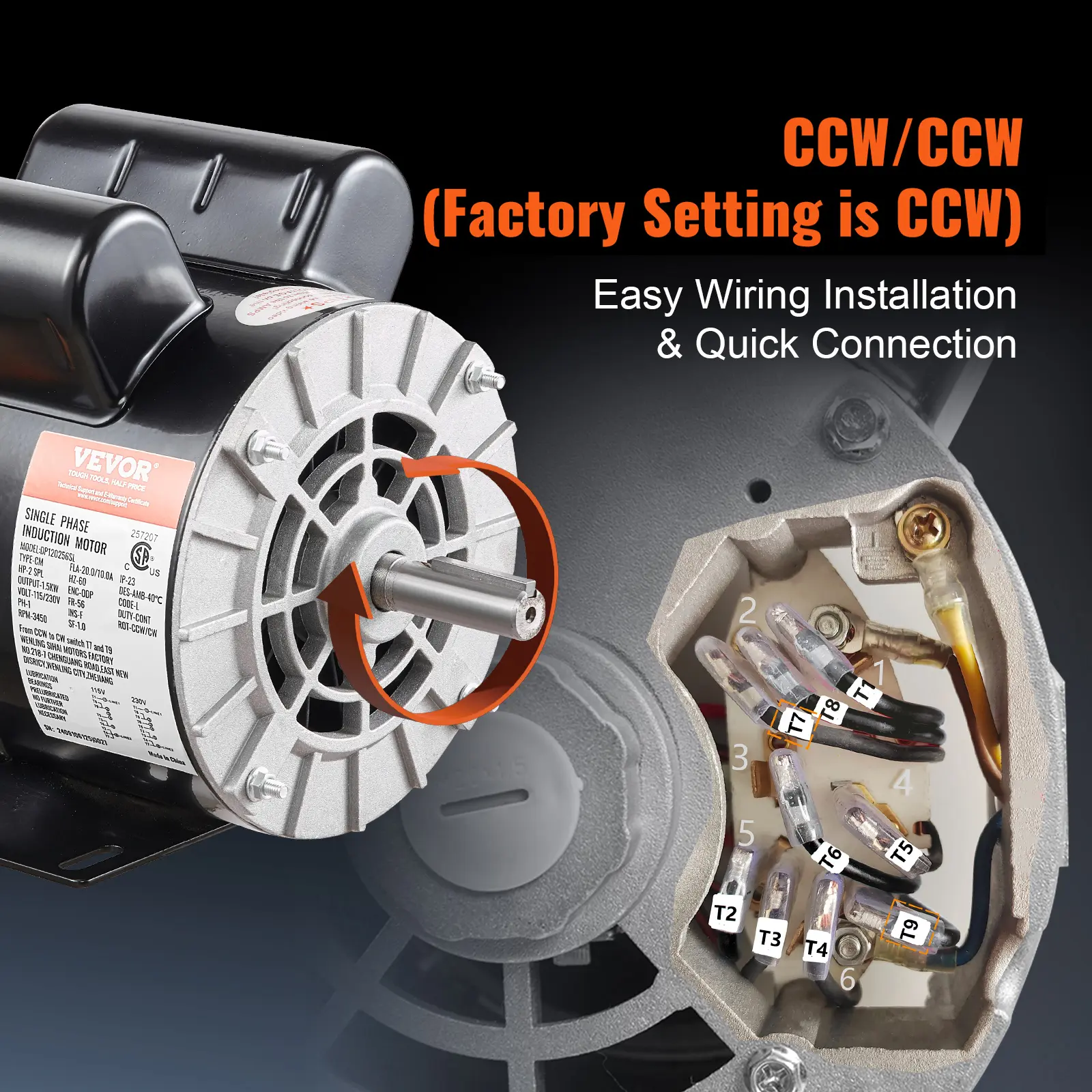 • Dual Rotation Direction: Motor is Reversible for CCW/CW rotation (Factory Setting is CCW), provides easier wiring operations.