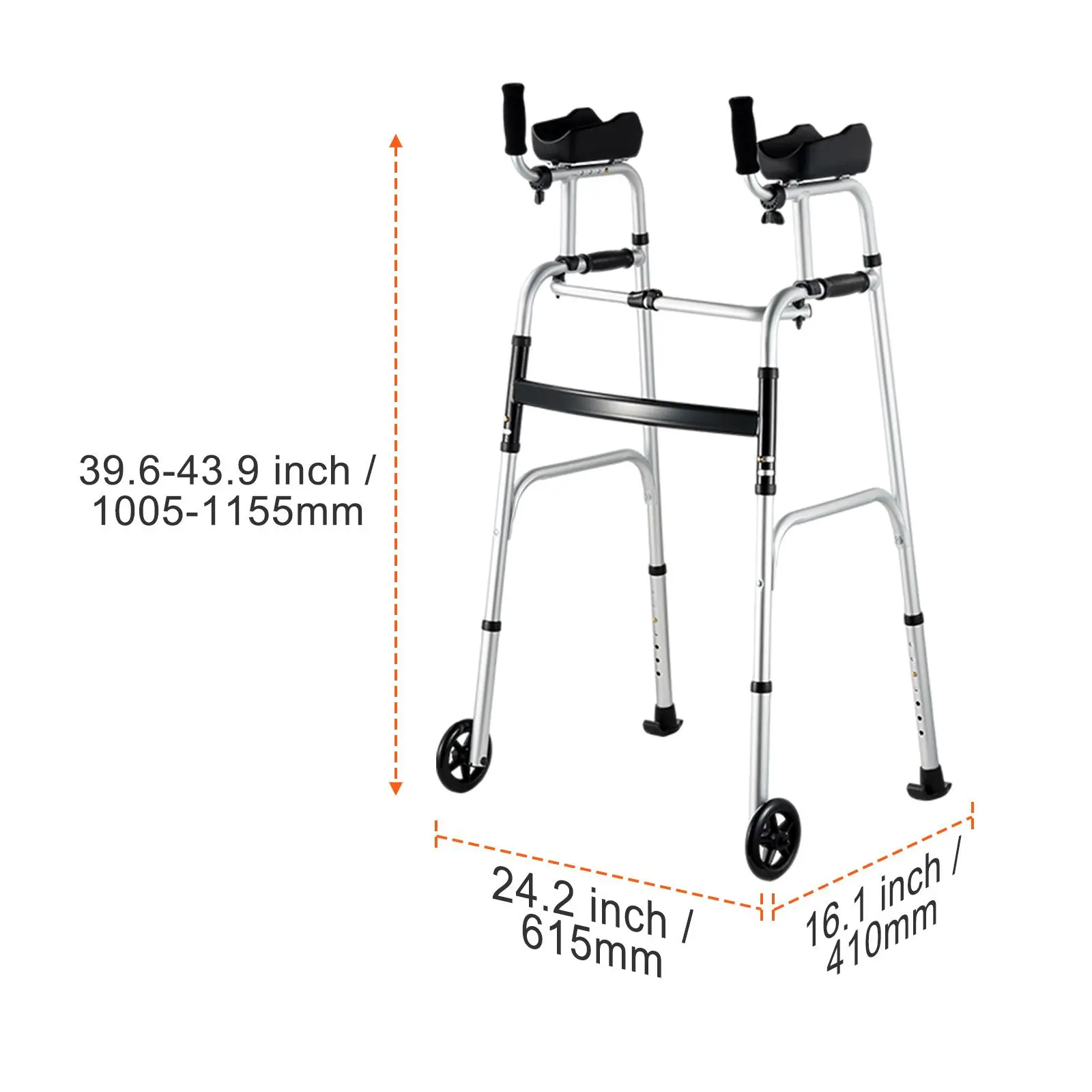 • Adjustable Height and Armrest: Different from traditional walkers, our 2 in 1 folding mobility walker offers not only 7-level adjustable height ranging from 39.6 to 43.9 inch, but also features 4-level adjustable armrest length. Customize it to fit your height precisely and enjoy tailored comfort for your individual needs.