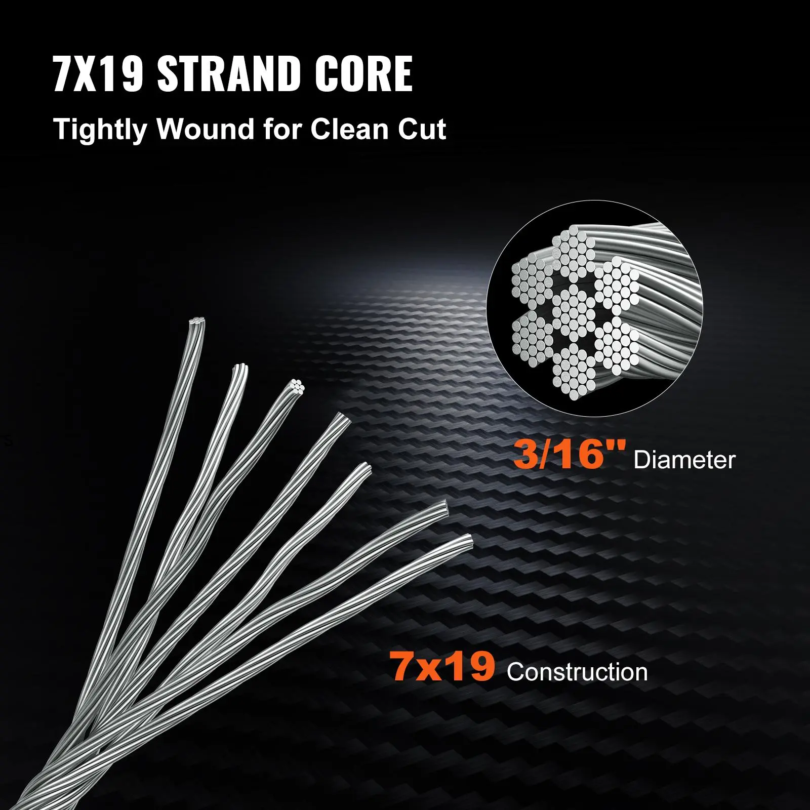 • 7x19 Strand Core: Our cable's secret is in its strength! This stainless steel cable has a 7x19 structure construction; 7 groups of 19 strands are braided together to form the cable. Thanks to the strong core construction, this wire rope is tightly wound for even cut. Customize the length with a cutter and get your ideal cable with no burrs.
