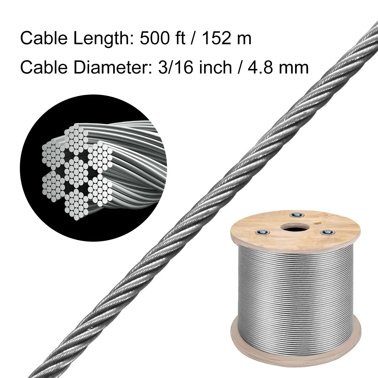 • 7x19 Strand Core: Our cable's secret is in its strength! This stainless steel cable has a 7x19 structure construction; 7 groups of 19 strands are braided together to form the cable. Thanks to the strong core construction, this wire rope is tightly wound for even cut. Customize the length with a cutter and get your ideal cable with no burrs.