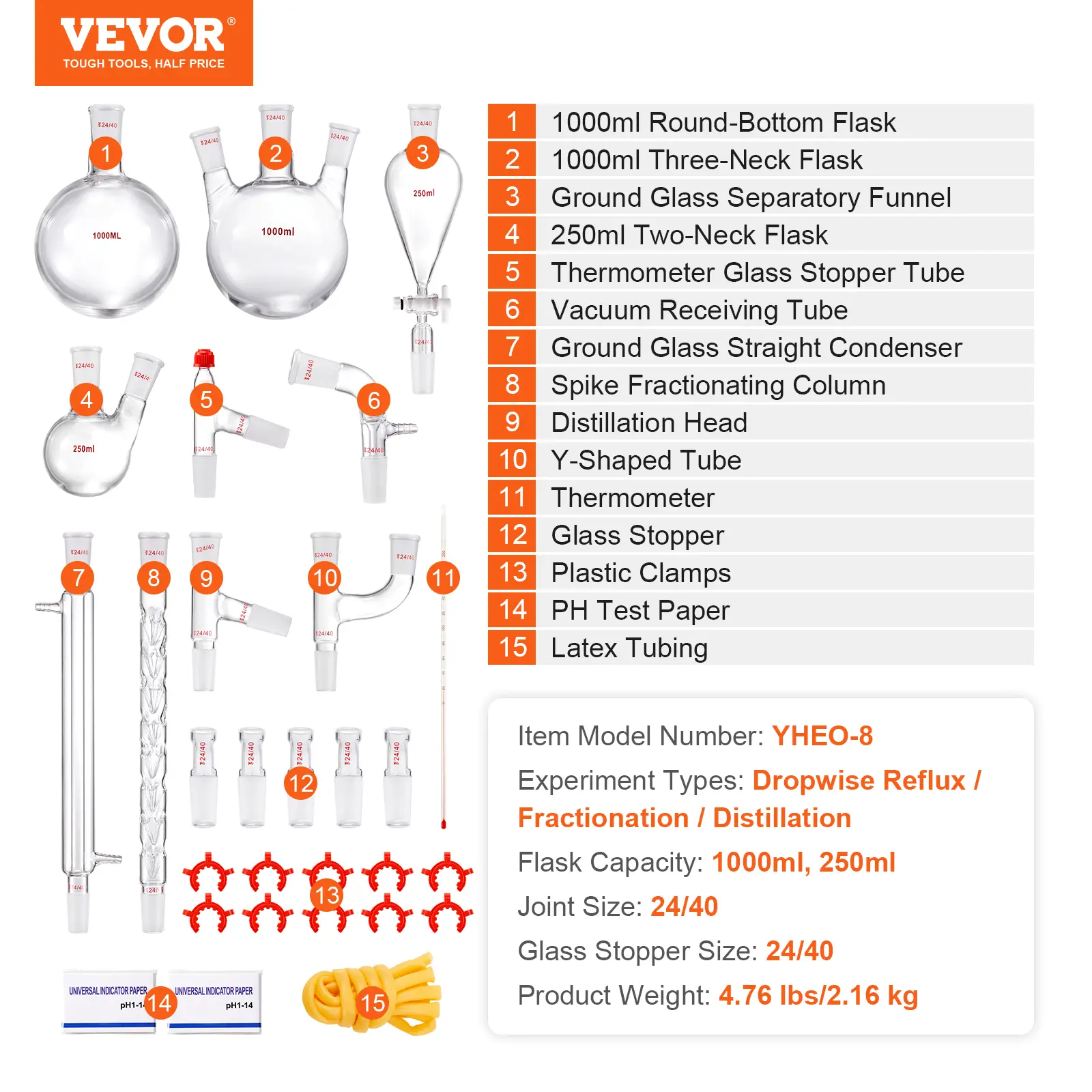 • Versatile Applications: VEVOR's professional distillation kit covers nearly all essential tools for laboratories, homes, research centers, and educational settings. Ideal for collecting essential oils, aqueous extracts, and distilled water.