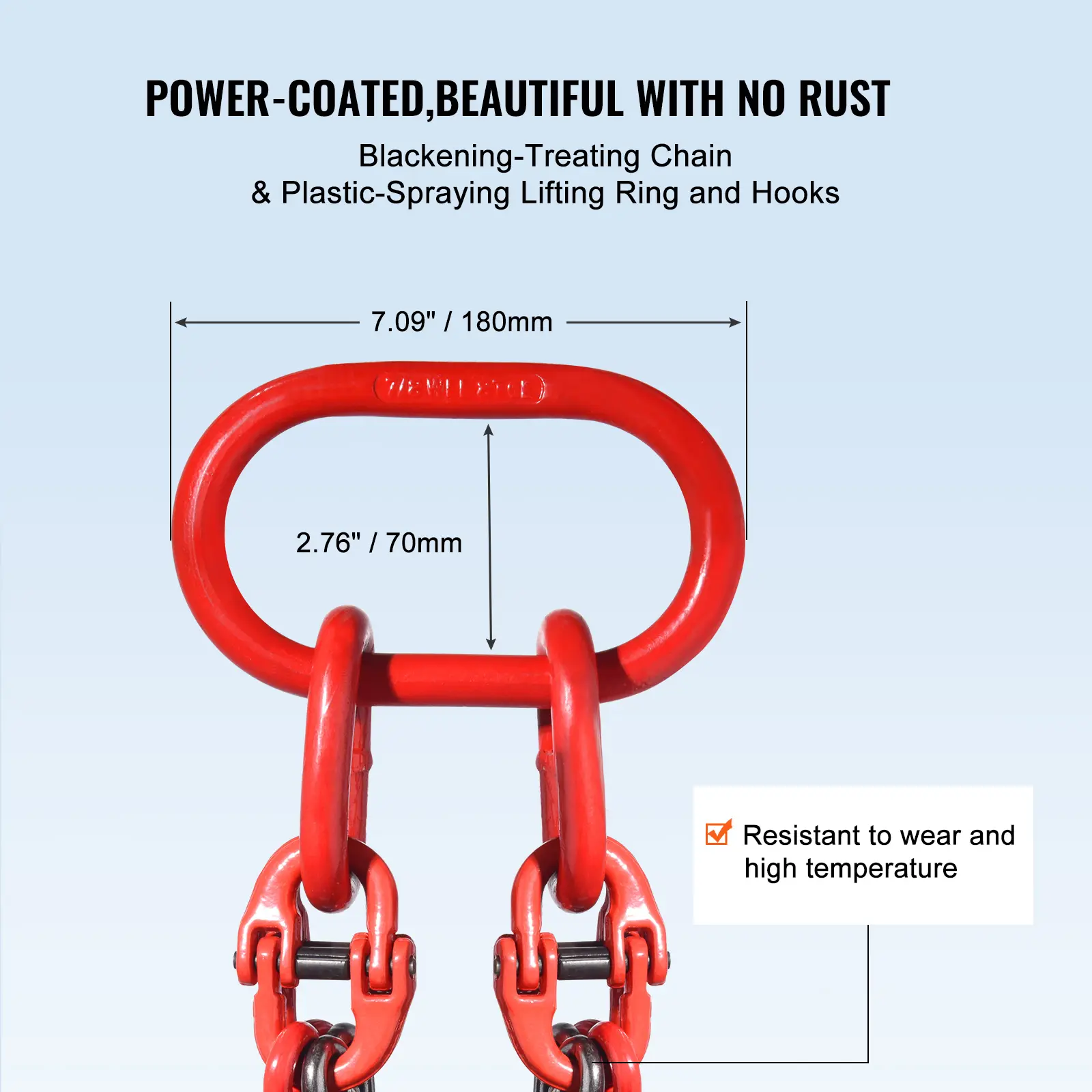 • Heavy Duty Chain & Hooks: Constructed of G80 Mn-steel chain and alloy steel hook, our chain sling features full-automatic welding technology, designed for long-term use.
