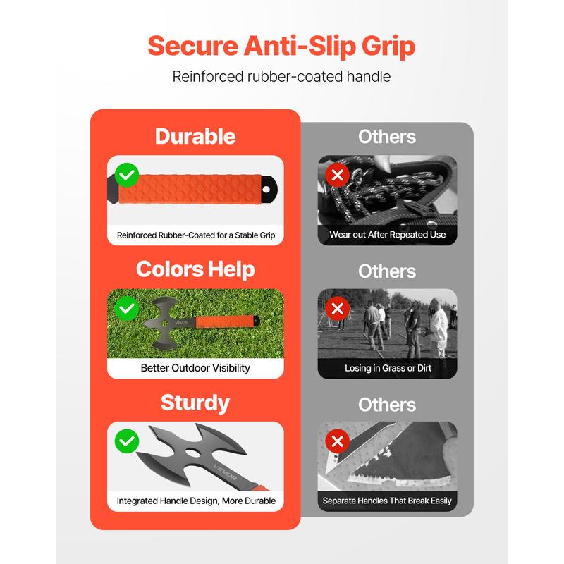Crafted from high-quality 3Cr13 stainless steel with heat-treated or blackened finish, this set withstands wear and rust. Long-lasting outdoor fun is guaranteed. The durable construction ensures these axes are built to last through repeated use.