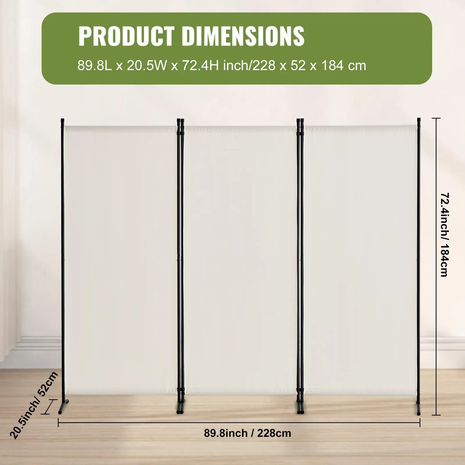 • Hassle-free Assembly: Our folding privacy screen can be assembled with snap connectors. Better 2 people make team work beacsue the divider fabric will be a little tight during the assembly. Please note that due to the fabric material, we suggest ironing the fabric before assembly.