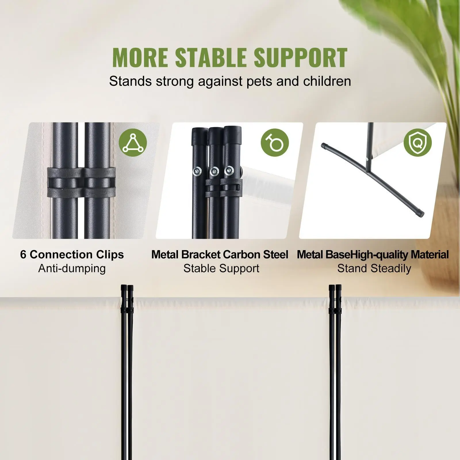 • Sturdy and Reliable Construction: Our 3-panel room divider is easy to assemble with 6 connector clips and a carbon steel metal frame. For added stability, we've included two metal bases. This makes our partition sturdy and not easily knocked over by pets or children.