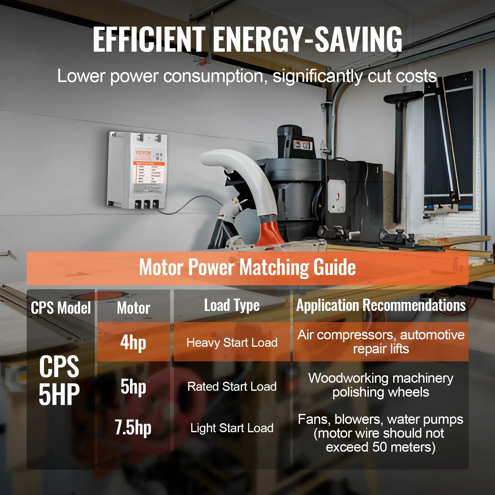 • Versatile Applications: This phase converter is perfectly suited for high-powered motor-driven equipment in both residential and commercial settings. Whether you're running power tools in your garage or managing woodworking machinery in small business, this converter provides stable and reliable three-phase power, meeting a wide range of motor power requirements.
