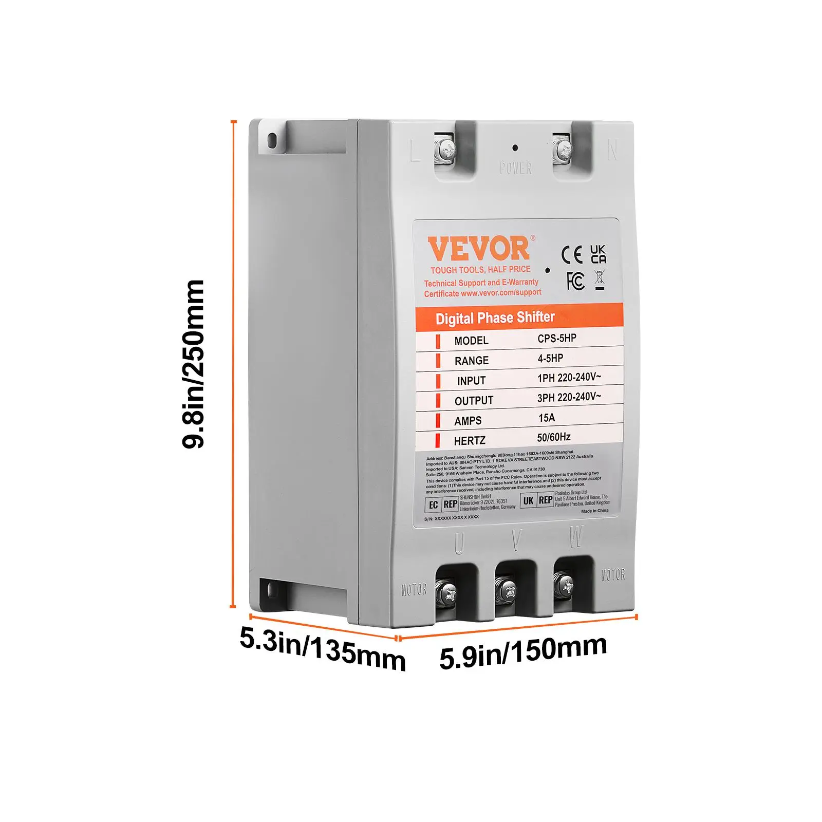 • Precise Phase Conversion: VEVOR 5HP digital phase converter offers precise single-phase to three-phase power conversion, making it the ideal choice for 220-240V motor equipment that demands three-phase power input. It stands out with compact size, high energy efficiency, and easy installation.