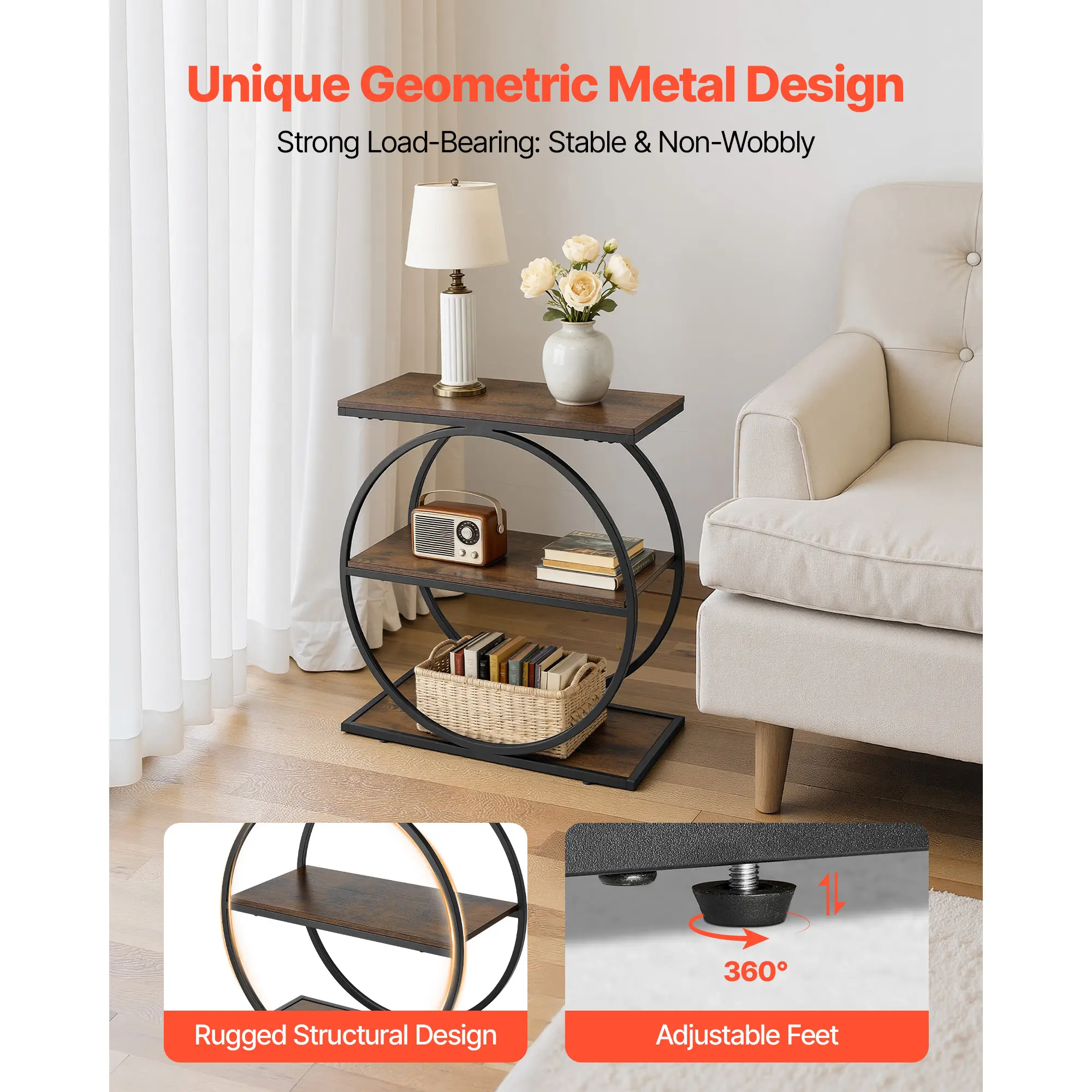 • Spacious Storage: With an open-shelf design, the metal end table offers easy access to items on the tabletop, like phones, tablets, or coffee, while lower shelves store books, glasses, snacks, or tissues. It helps keep your home organized and clutter-free