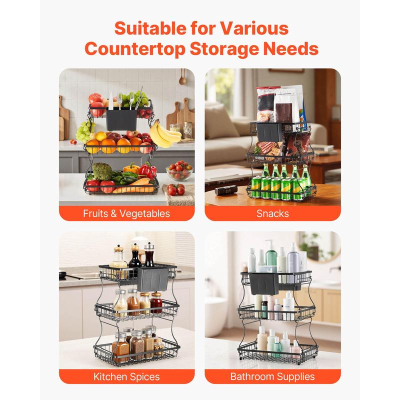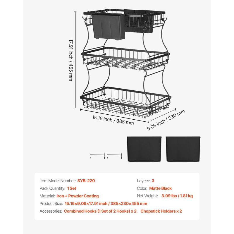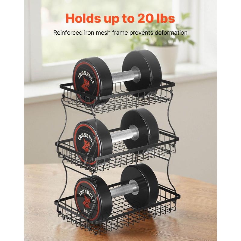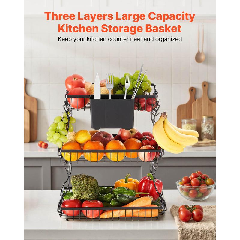 • Three-layer Large Capacity: Dimension: 15.16x9.06x17.91 in (385x230x455 mm). This countertop fruit basket allows for categorized storage of fruits, vegetables, snacks, and more. Maximizes vertical space to solve clutter and keeps items organized