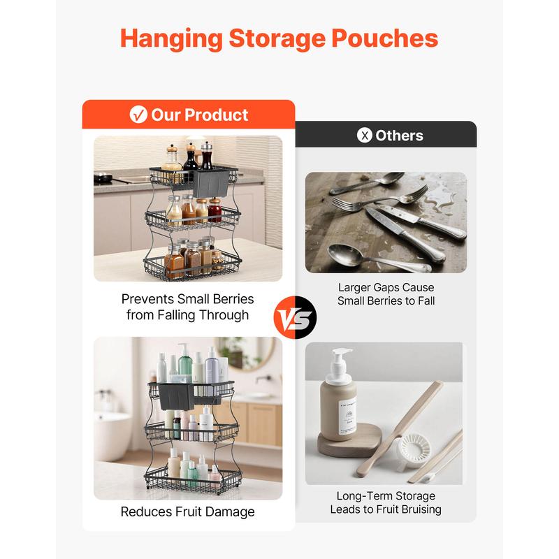 • Compact Storage Pouches: Includes two small storage side baskets, this large capacity fruit bowl is ideal for slim utensils and other small items, avoiding clutter and keeping your countertop tidy