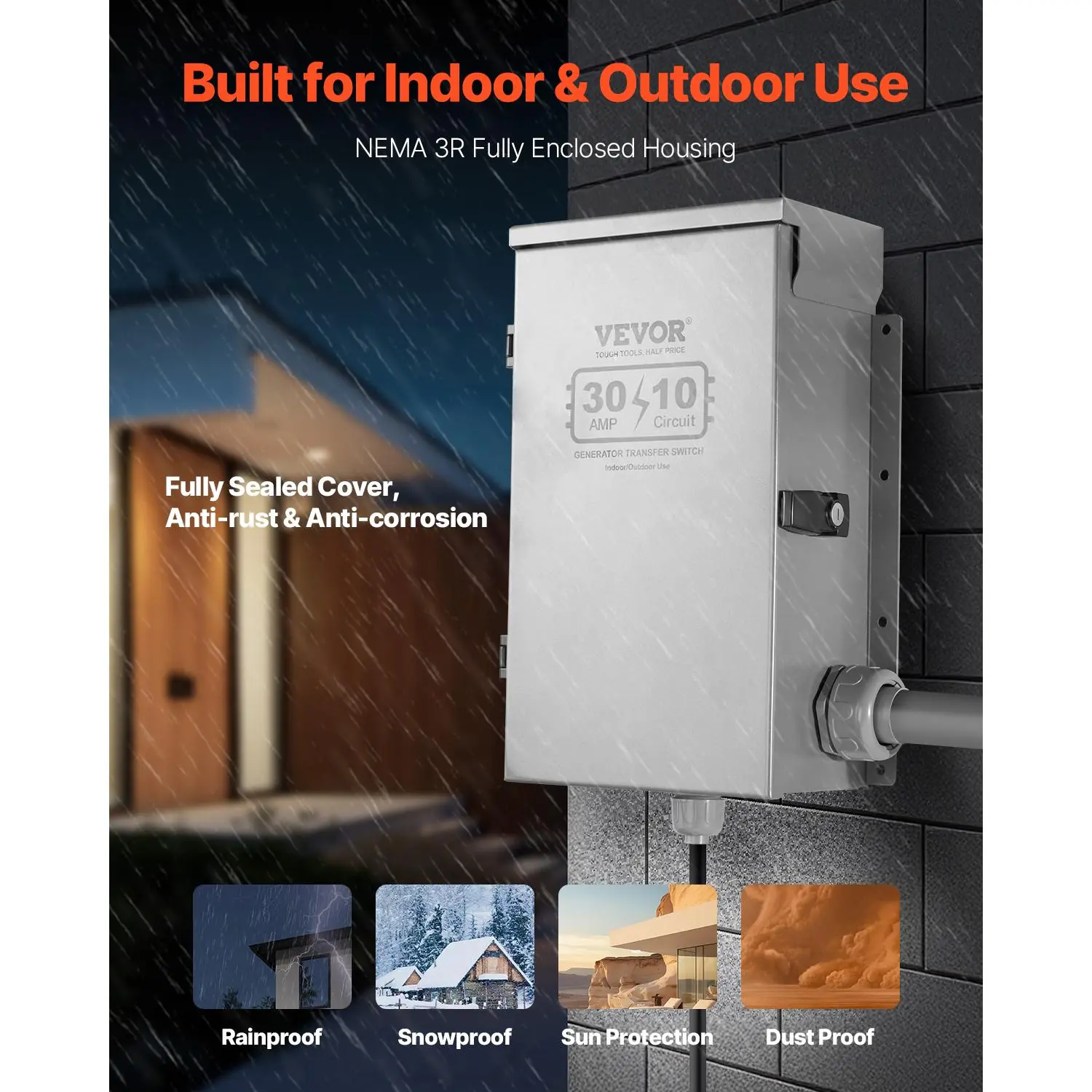 The NEMA 3R enclosure with a fully enclosed cover ensures secure use in harsh conditions. It protects internal wiring for reliable operation. Ideal for both indoor and outdoor use.
