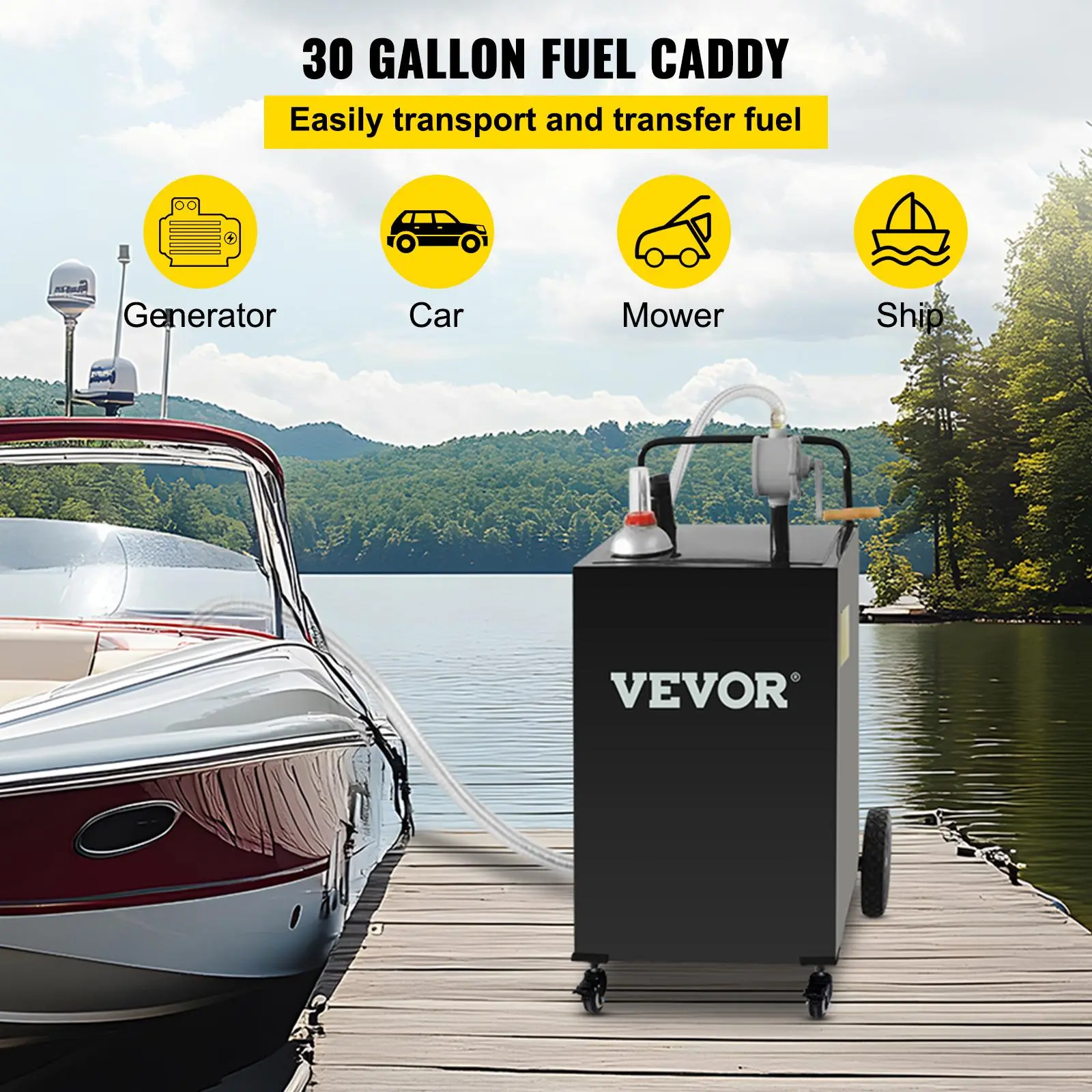 • High Volume 30 Gallon Fuel Caddy: The 30-gallon fuel caddy allows for easy maneuverability, letting you bring the fuel directly to where you need it, making dispensing quick and painless. Our fuel storage tank can securely hold gasoline, kerosene, or diesel. It's the perfect choice for auto repair, farms, lawns and gardens, marine uses and more.