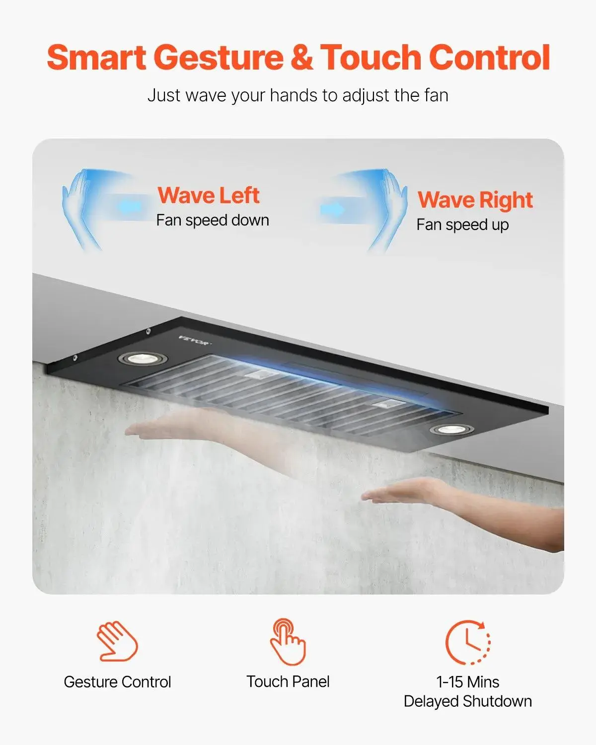 Experience modern convenience with a touch panel and gesture control. Adjust fan settings effortlessly, even with dirty hands. Use the 1-15 minute delayed shutdown feature for added flexibility.