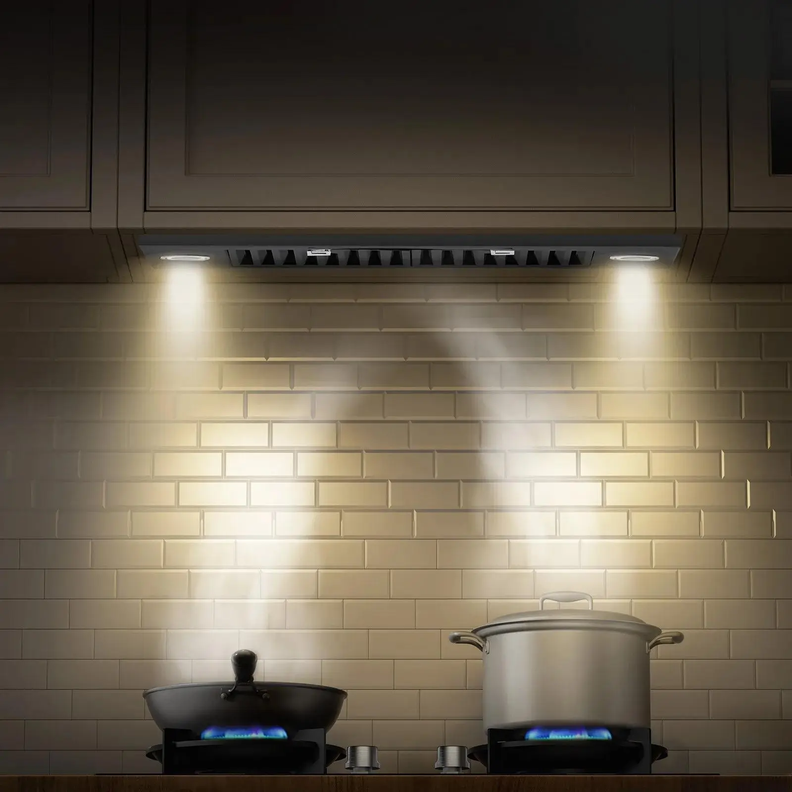 Customize your kitchen lighting with adjustable LED lights. Set the perfect ambiance for cooking, whether you need bright illumination or a softer glow.