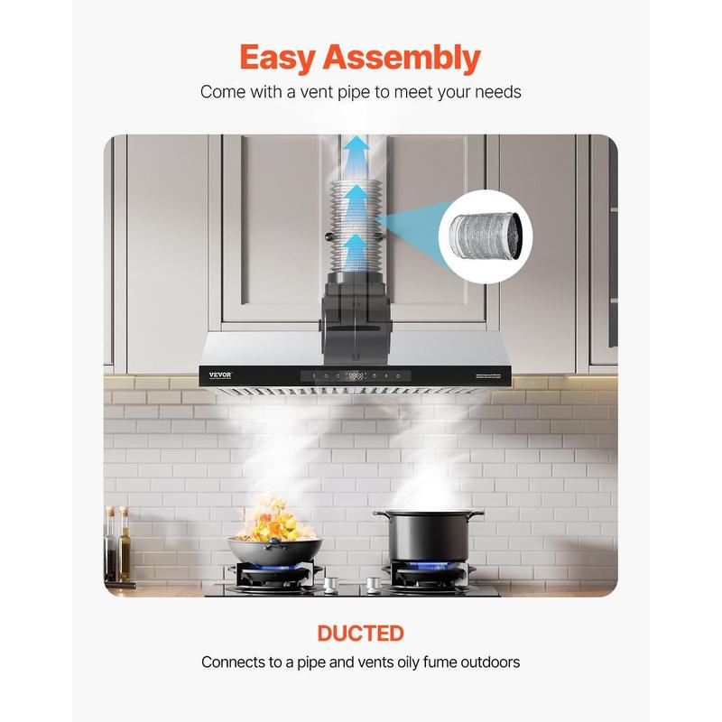 • Easy to Assemble: Adapt the range vent hood to your kitchen setup with ease. It comes with a duct pipe, allowing for versatile installation options to suit your ventilation needs.