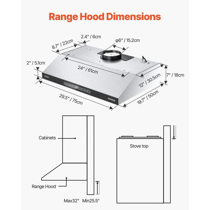 • Premium Stainless Steel: Crafted for durability and ease of maintenance, the vent hood features stainless steel. Its 2 detachable filters effectively capture grease and oil, and are dishwasher safe, making cleanup a breeze.