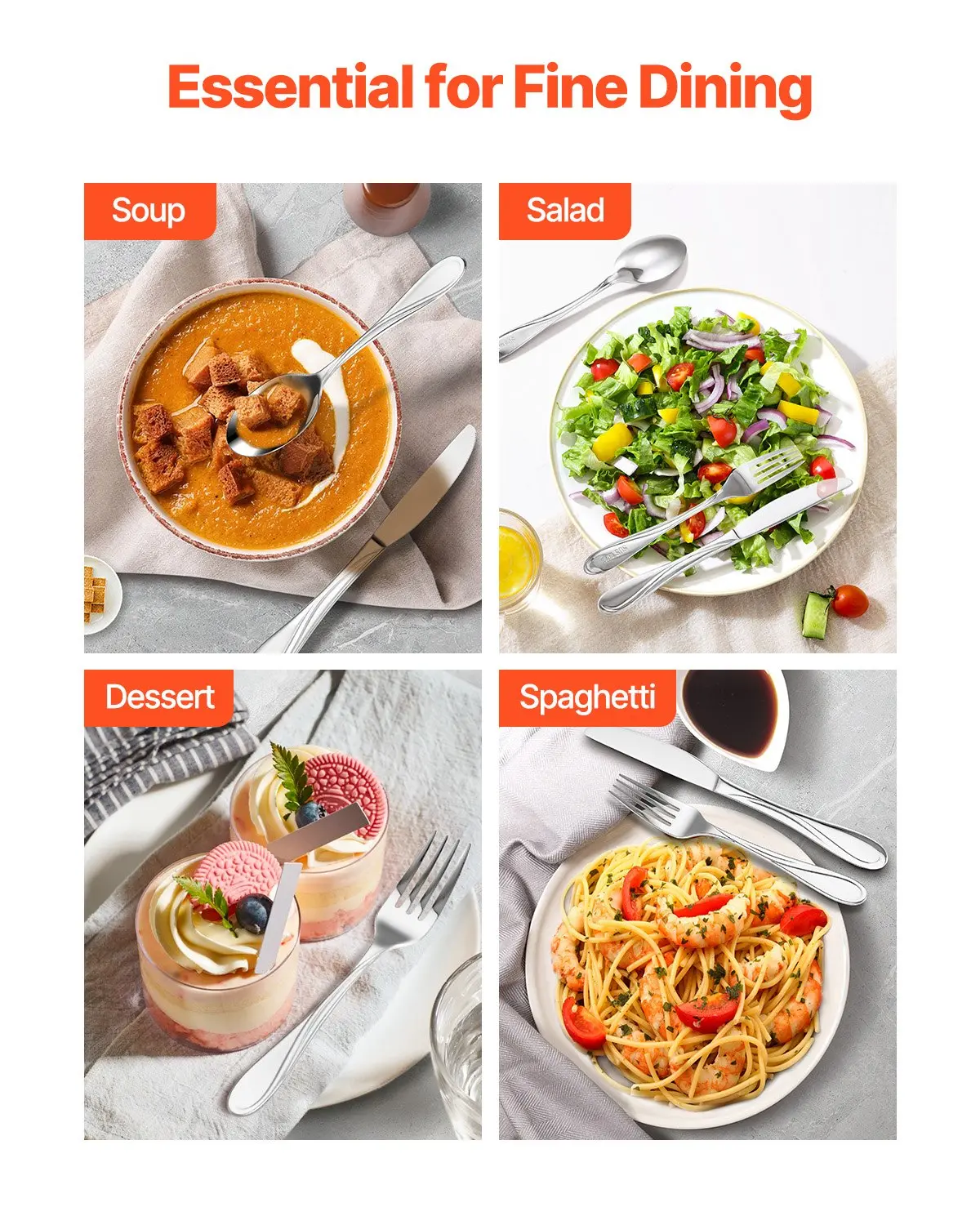 This versatile set is a must-have for any kitchen. Its stainless steel construction and mirror finish make it a standout addition. The set is designed for easy maintenance with its dishwasher-safe feature. Enjoy a polished dining experience with the VEVOR Silverware Set.