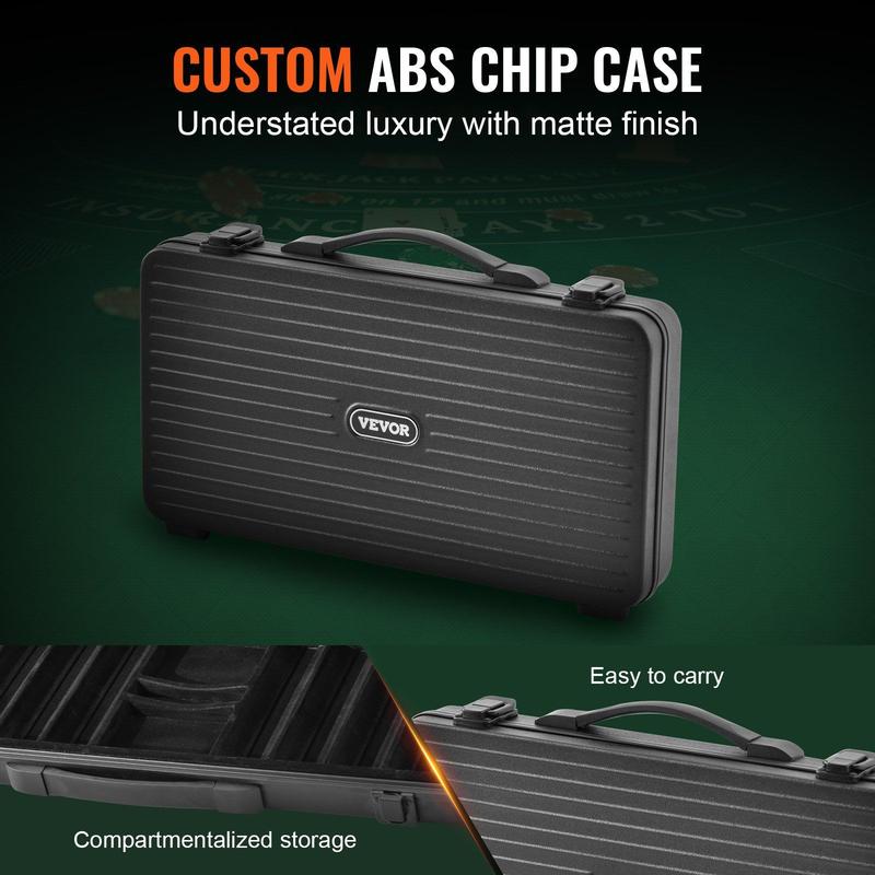 The professional poker set is packaged in a case that neatly organizes both poker cards and chips, providing orderly storage and dust protection.