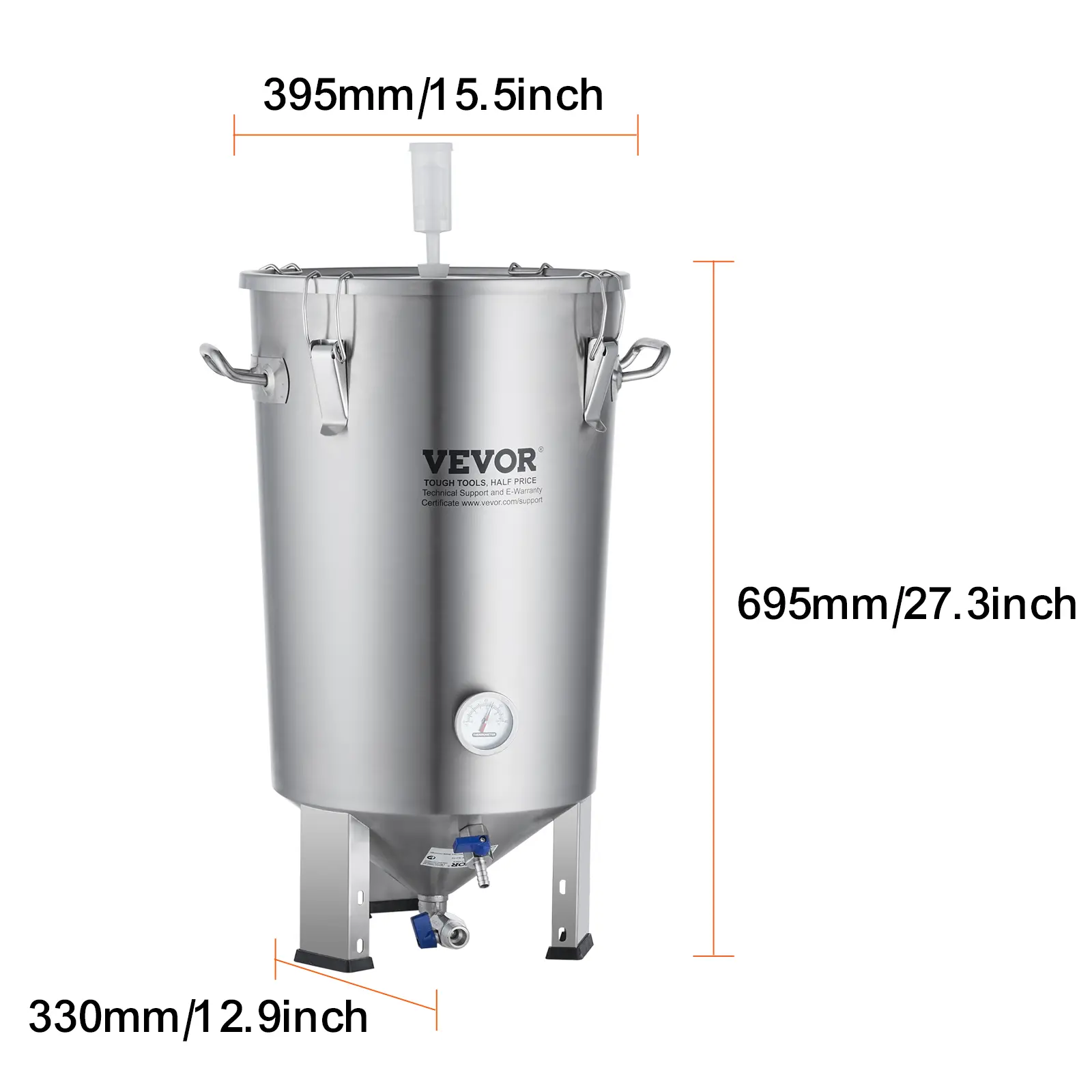 • Large Capacity: With an 8-gallon fermentation capacity, you can enjoy satisfaction as you please. The thickened handles make it easy to lift, with dual steel stamp scales in liters/gallons. The adjustable height barrel feet allow for flexible adjustment according to needs. The conical bottom design is conducive to sediment accumulation and fermentation, with yeast slurry valves and beer valves for easy discharge of yeast sludge and bottled beer.
