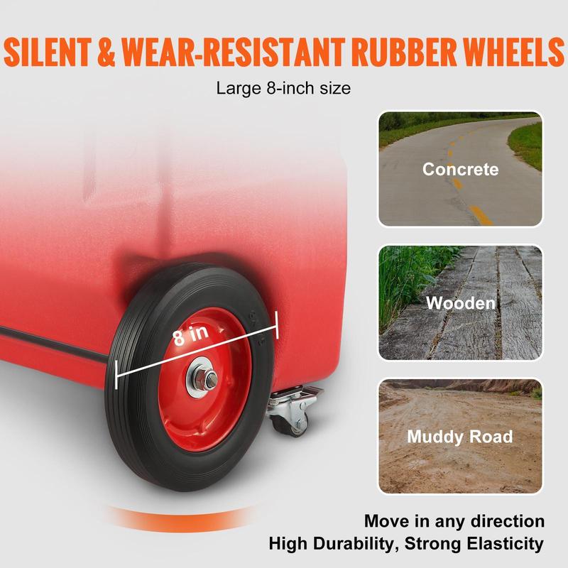 • Portable Fuel Caddy: The portable fuel tank features a molded-in handle and two 8" built-in wheels for easy moving. It is easy for you to use your fuel tank anywhere on your property, saving your energy and improving your work efficiency.