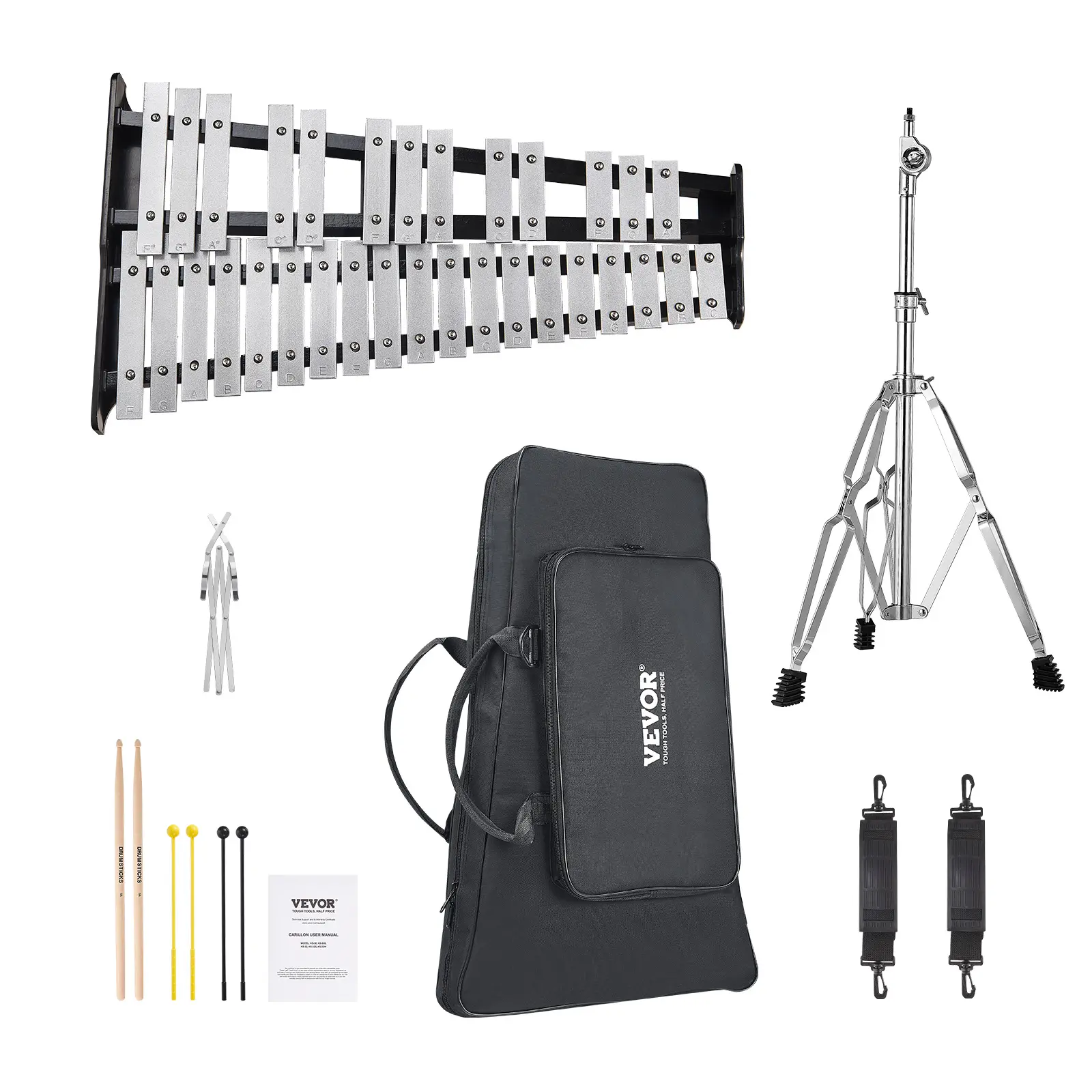• Comprehensive Package: The glockenspiel xylophone bell kit includes: 32 Note Xylophone x1, Carrying bag x1, Adjustable stand x1, Music stand x1, Practice pad x1, Mallets x4, Clamp x2; the electroplated music stand with a stable structure and clamp combination aids in securing music sheets for comfortable daily practice, making it suitable for manual use.