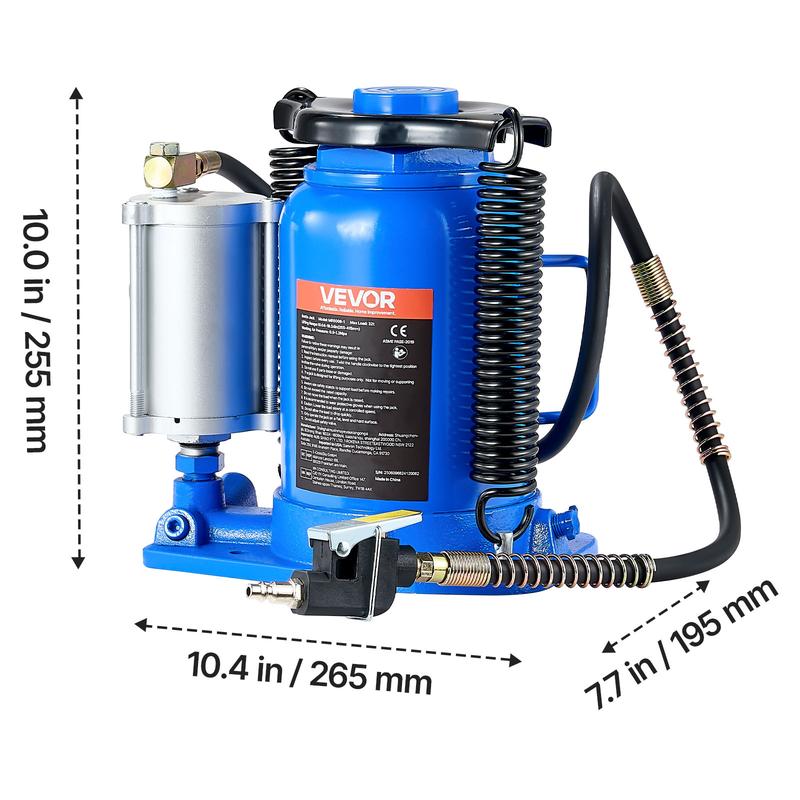 • Manual and Pneumatic: Lift how you want with our high lift bottle jack. Use the pneumatic mode for quick, low-effort lifting via standard quick-connect fittings. No air? Switch to manual and keep working—whether you're in the shop or out in the field