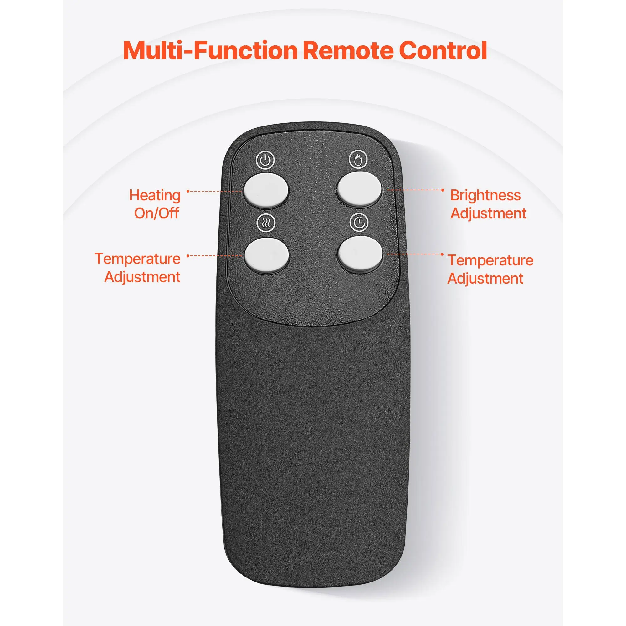 The fireplace comes with a remote control to operate all functions without getting up. It includes a real-time digital temperature display. The remote requires 2 AA batteries (not included).