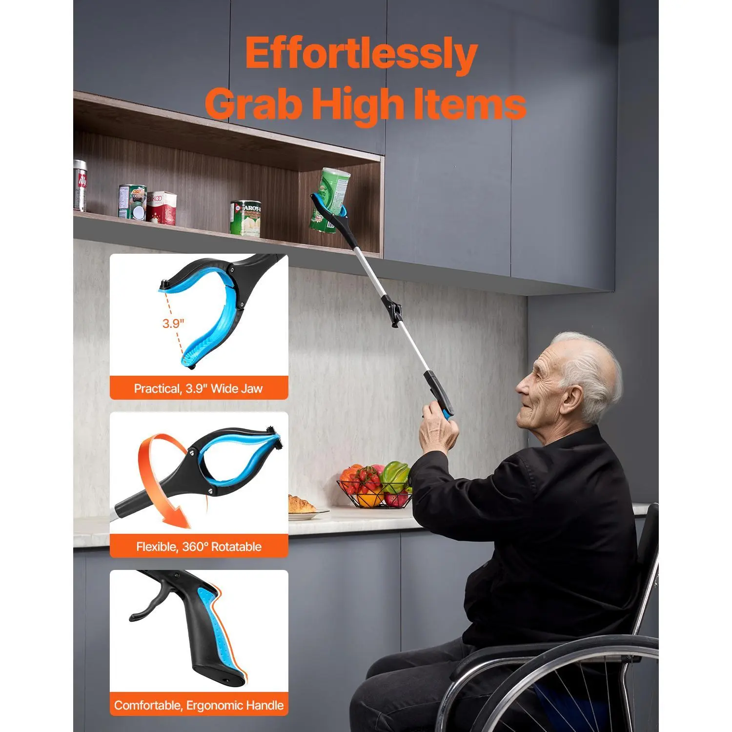 • Easy Item Grabbing: The 10cm wide, rubberized jaw of the grabber reacher tool securely grips items like envelopes, cans, and trash. With a 360° rotating head that adjusts to vertical or horizontal angles, it's ideal for indoor and outdoor use.