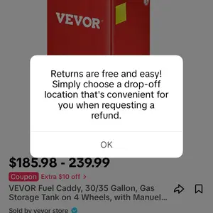Just want to let everybody know that I had received my gas caddy with a big dent in the side of it and the Vevor did absolutely nothing about it will not refund will not compensate. They are a bad company to buy from.