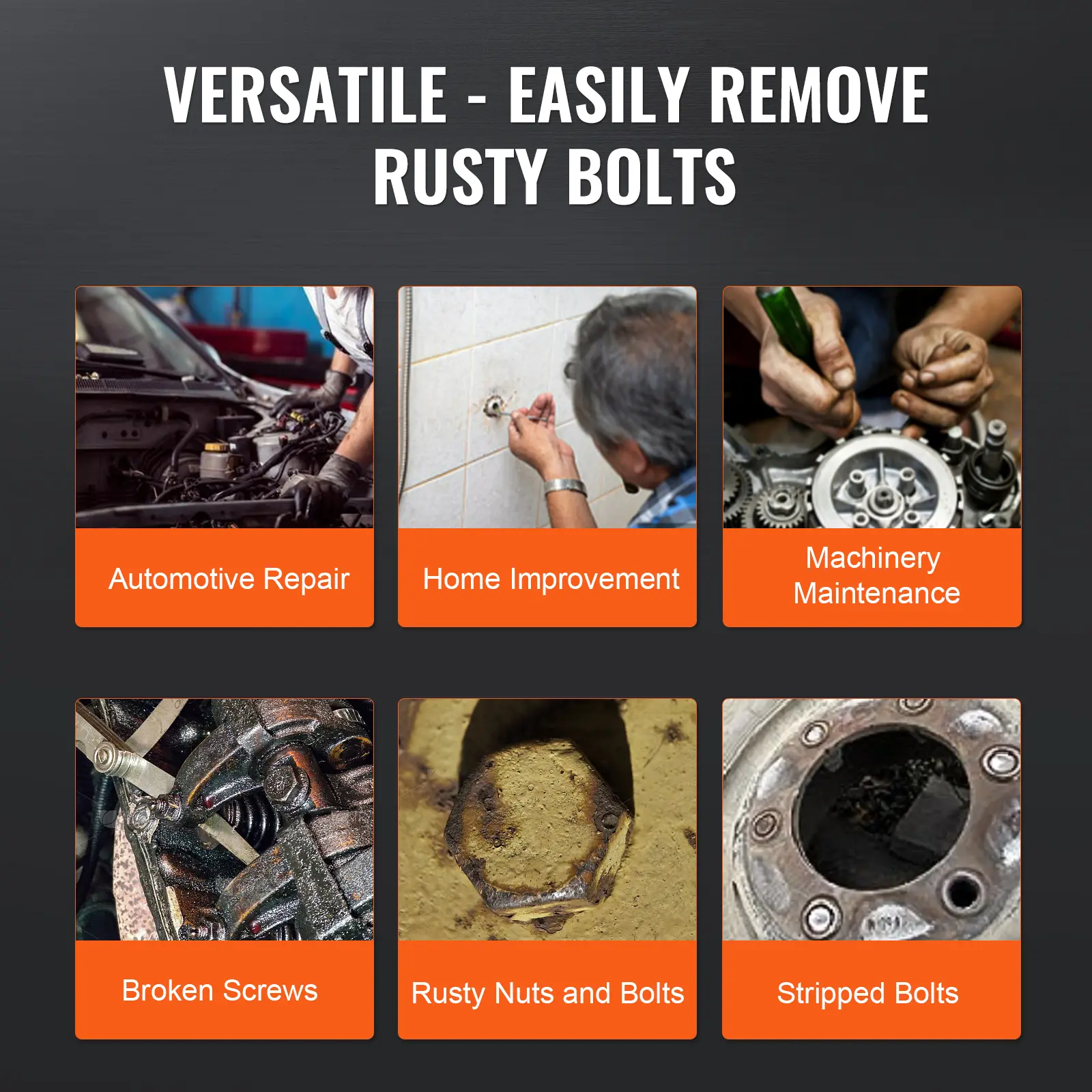 • Non-Slip Design: The extractor set features a reverse spiral design that securely grips threads to prevent slipping or loosening during operation.You can confidently use adjustable wrenches, power tools, ratchets, and more for efficiently and rapidly removing broken or stripped bolts.