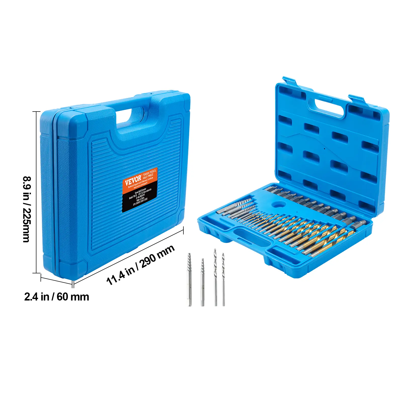 TikTokShopBlackFridayVEVOR Screw Extractor with Drill Bit Set, 35-Piece Bolt Extractor Kit, 19 PCS Bolt Extractors and 16 PCS Reverse HSS Drill Bits, with Storage Case, for Removing Damaged Bolts, Screws, and Nuts