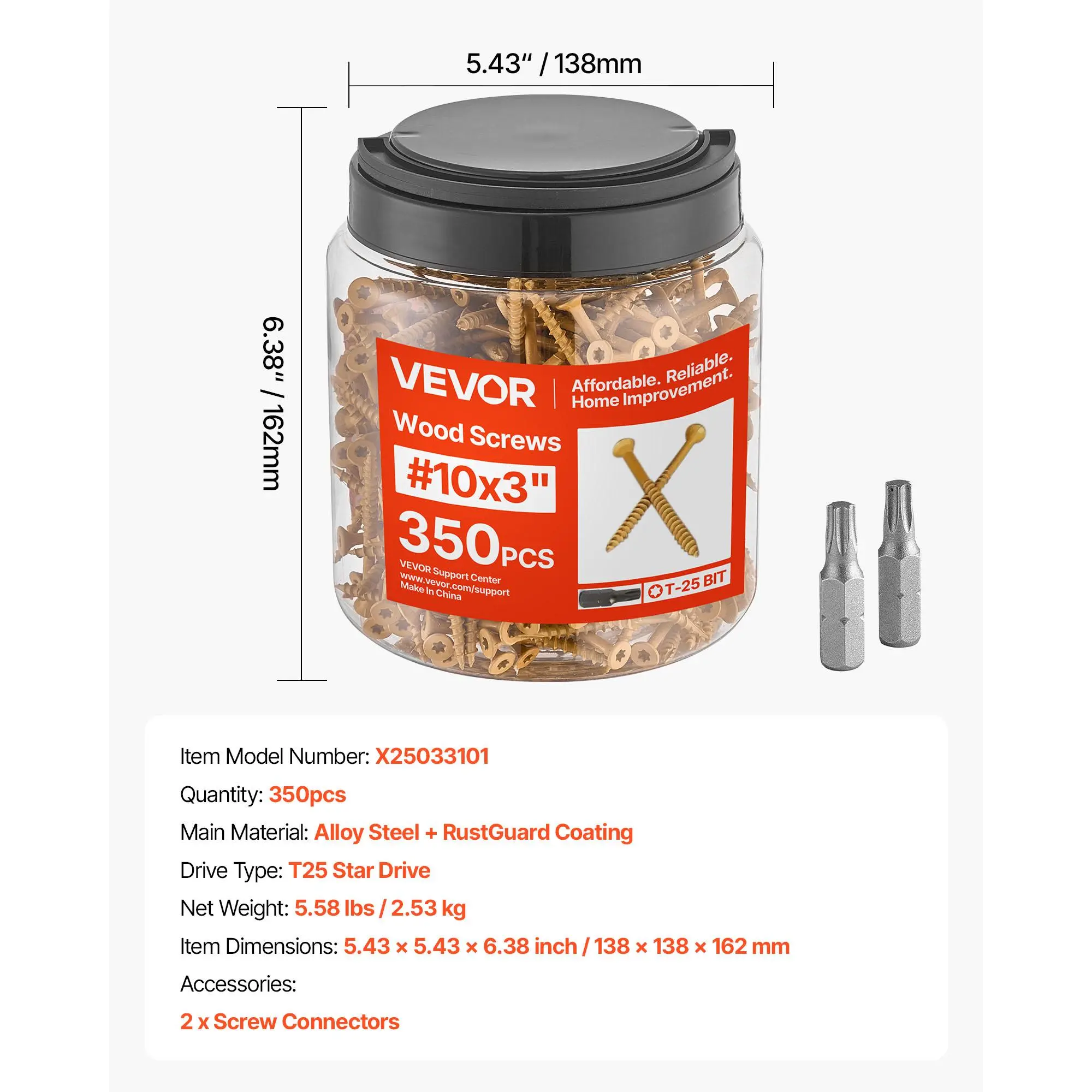 VEVOR WOOD SCREWS. 350 PCS, 10 X 3", T25 HEADS,  RUST RESISTANT, COMES WITH 2 BITS. #woodscrews #tiktokshopcreatorpicks #tiktokshopblackfriday #openyoursuperstory #tiktokshopcybermonday @Vevor Shop US @Vevor Store US @CreatorCollab_Mabel @Haidee_Collab