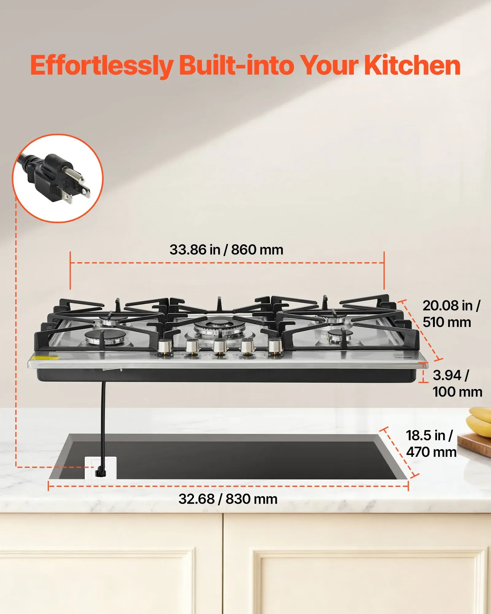 ·Clean Built-In Look: With a 32.68 x 18.50 inch/830 x 470 mm cutout and R10 rounded corners, this countertop stove gas settles into the counter with a unified shape. Its clean integration supports a neat, modern layout that adds a fresh touch to the kitchen