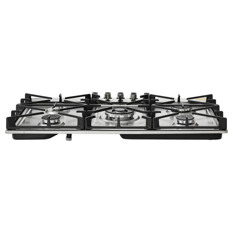 ·Heat Range Control: Equipped with five burners at 38300 BTU and a 13000 BTU SABAF dual-ring main burner, our gas top stove offers even flame for simmering, frying, sautéing, and warming. Its layered heat settings provide seamless transitions for handling varied dishes