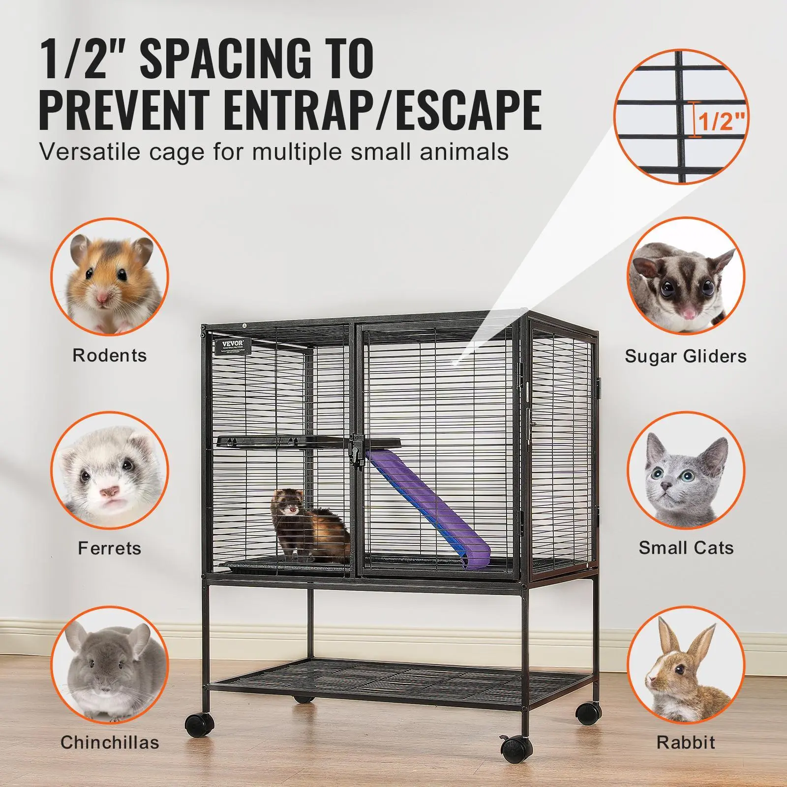 • Sturdy and Practical: Reinforced thick metal square tubes ensures great stability and rust resistance thanks to the fine and even powder coating and welding. The small animal cage features narrow 1/2" metal mesh spacing, with screw-in door latches, to prevent small animals from escaping.