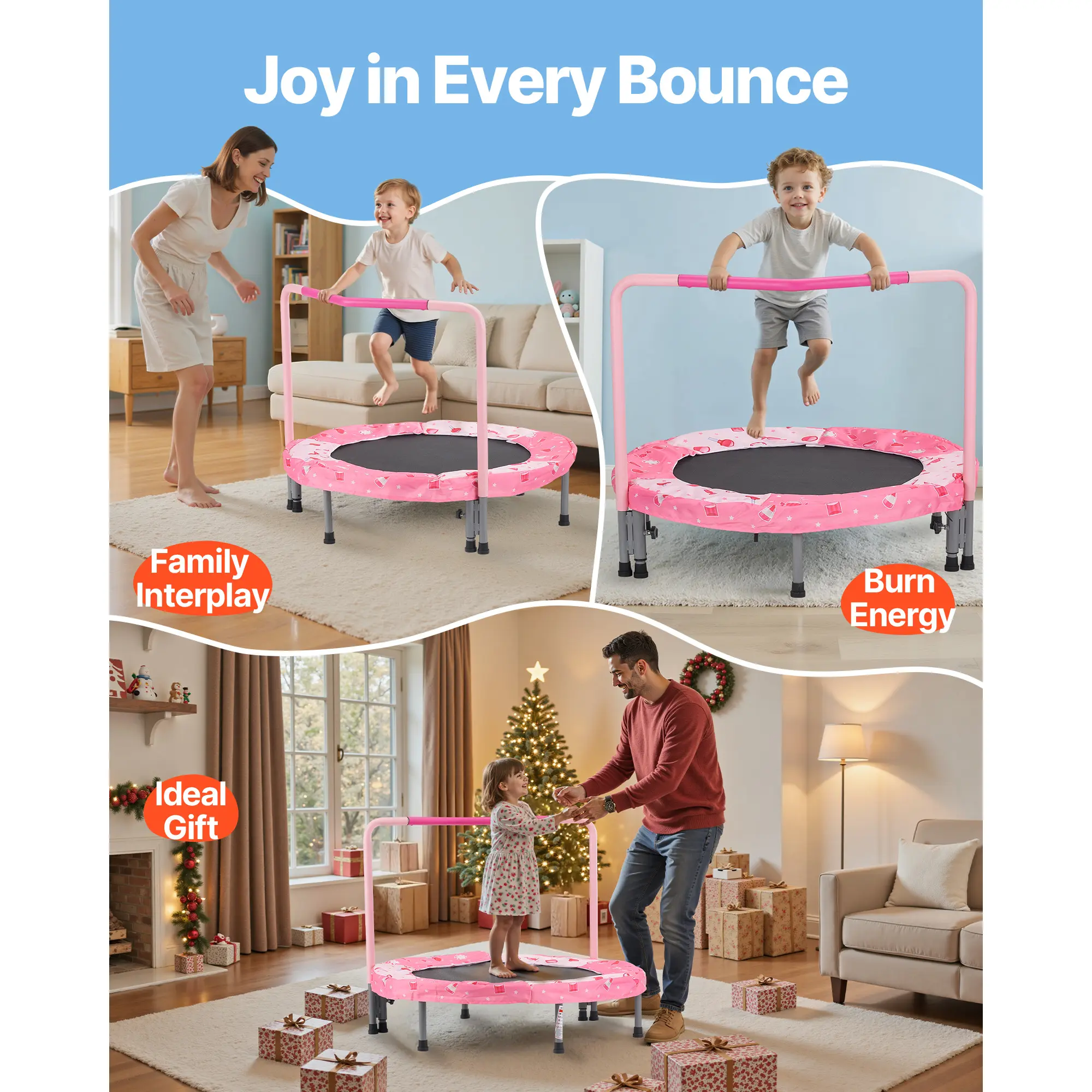 • Holiday Gift: This exercise trampoline for kids offers an ultimate bouncing entertainment experience, keeping toddlers away from electronic devices and promoting physical growth. It's the perfect choice for holiday gifts, creating fun and wonderful memories for both children and adults.