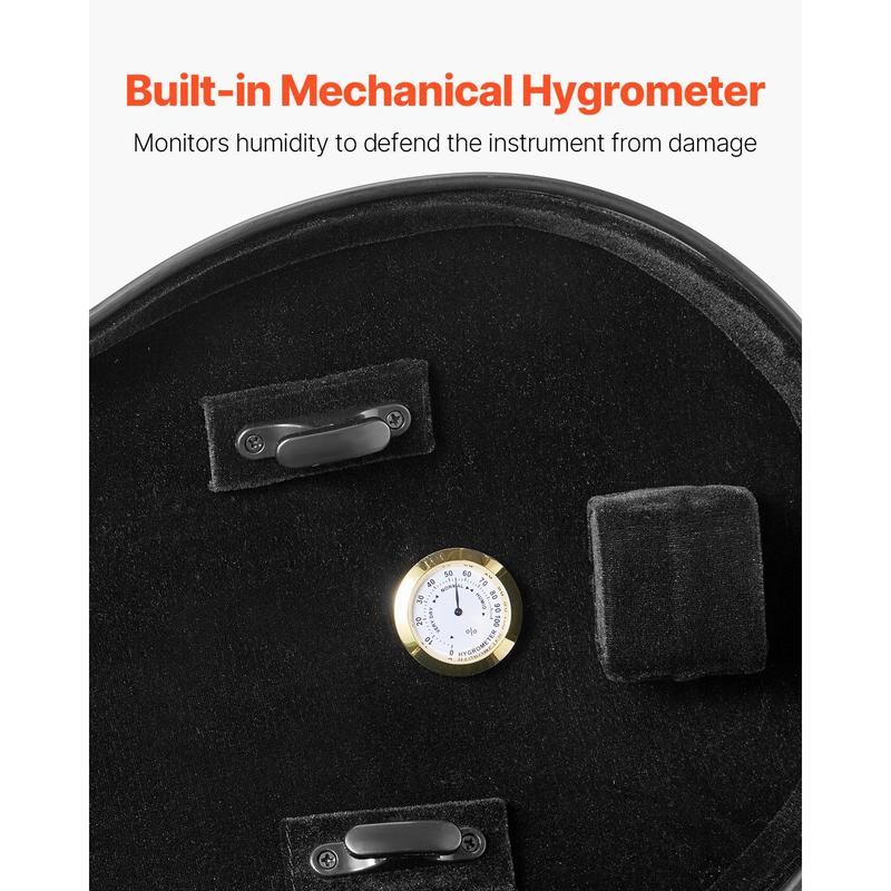 The case includes a built-in hygrometer to monitor humidity. It reduces the risk of wood cracking or warping. Bow holders have locking slots, with explosion-proof zippers and a reinforced handle for lasting use.