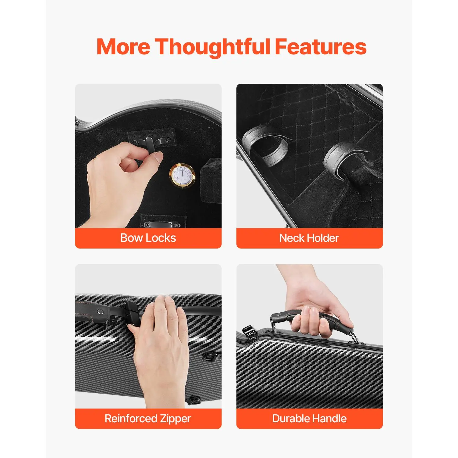 A built-in neck holder keeps the violin centered and suspended. This prevents collisions and damage during transport. It ensures the violin remains safe and secure throughout the journey.