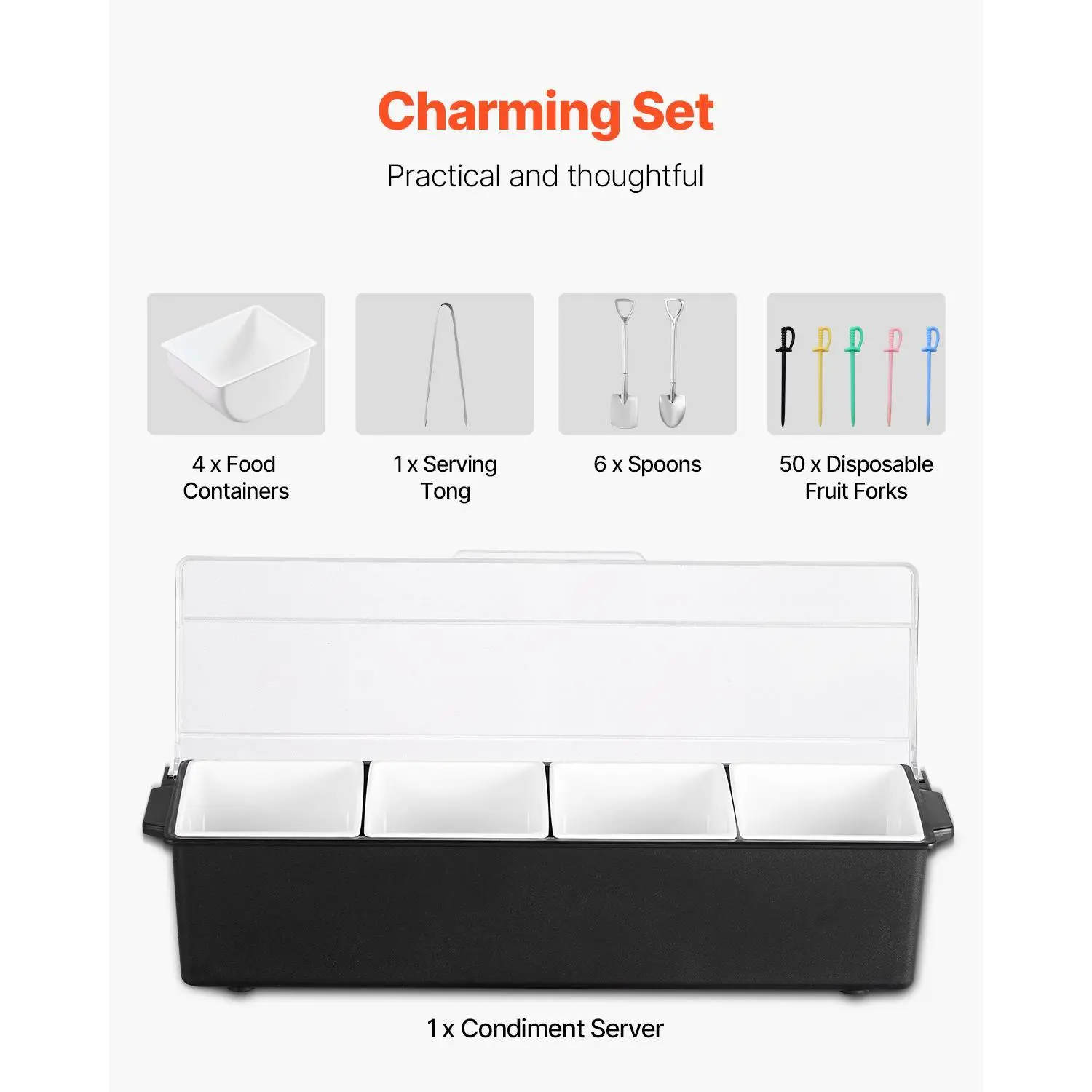 ·Easy to Clean: Both the food containers and outer casing of our bar condiment tray with lid are easy to disassemble, allowing for quick and thorough cleaning after each use for easy maintenance