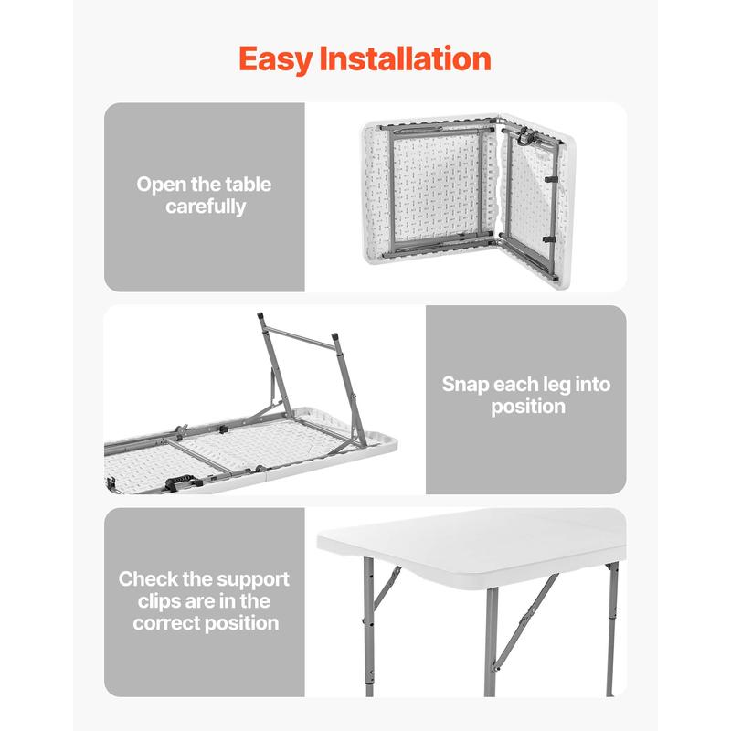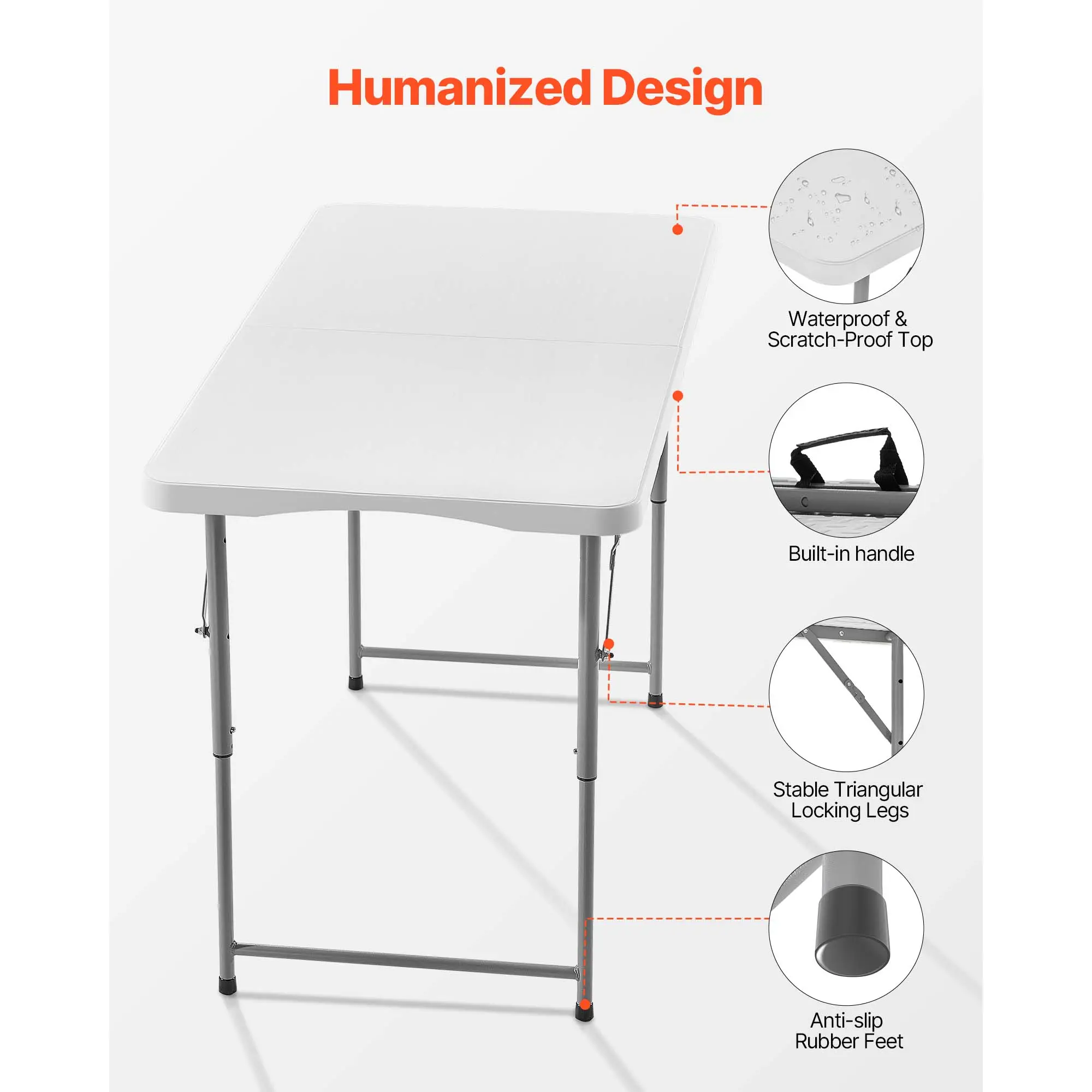 • Spacious Multi-Person Design: The camping table has a 4ft wide tabletop seating 4-6 adults, ideal for camping, tailgates, or bbq. Three adjustable heights (19/24/29 in) suit dining, work, or buffets—quick-lock mechanism ensures easy adjustments